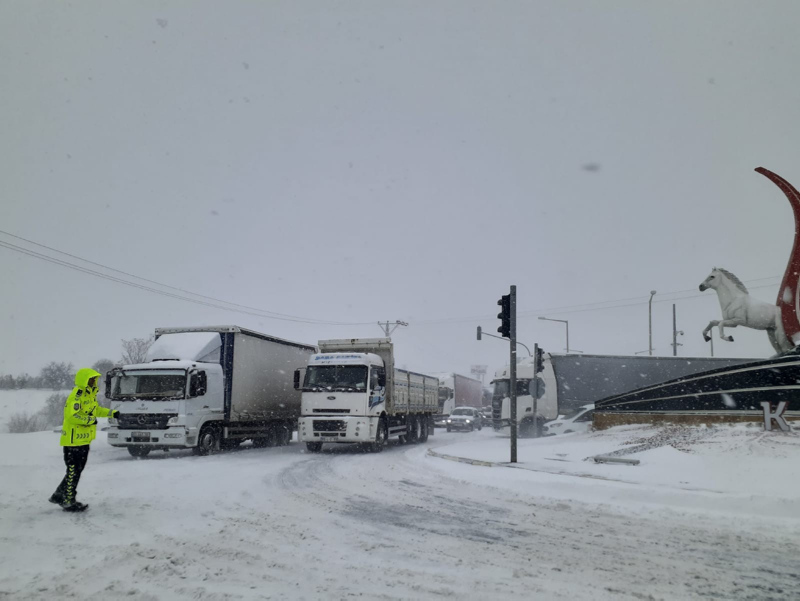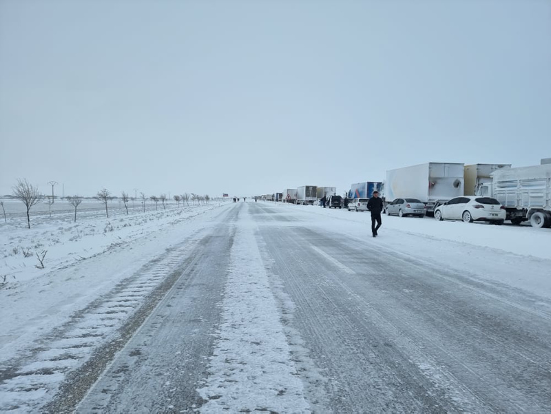 Tipi sebebiyle dün gece Konya yolu trafiğe kapatılırken halen etkili olan kar yağışı ve tipi nedeniyle Aksaray-Adana ve Nevşehir yolları da trafiğe kapatıldı. Karayollarında oluşan uzun kuyruklar dron ile görüntülendi.