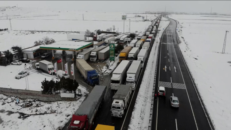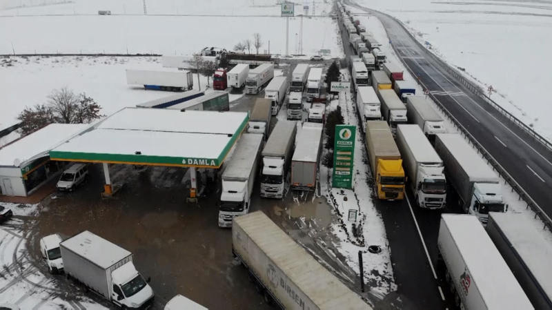 Tırlar ve otomobillerin birçoğu karayolunda kalırken, diğerleri de dinlenme tesislerine çekildi. Yolda kalan ve tesislere çekilen araçlara kumanya dağıtımı yapıldı.