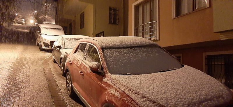 Kentte birkaç gündür süren yağışlı hava, gece saatlerinde bazı yüksek bölgelerde kar şeklinde devam ediyor.