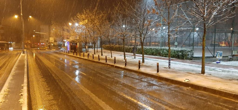 Başakşehir ve Arnavutköy'de kar yağışı etkisini gösteriyor. Avrupa Yakası'nda bazı ilçelerde de sulu kar görülüyor.