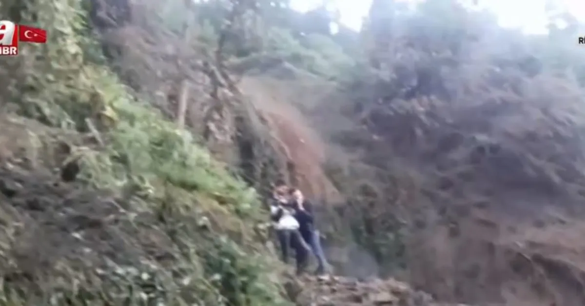 Rize'deki hasarı görüntülemek için çekim yapan A Haber ekibinin kayıtta olduğu dakikalarda heyelan meydana geldi.