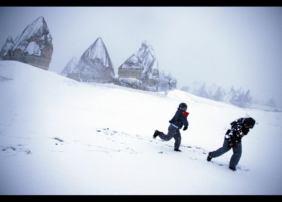 Peri bacalarında karın keyfini çocuklar çıkarıyor. Niğde kent merkezinde ise kar kalınlığı 10 santimetreyi aştı.