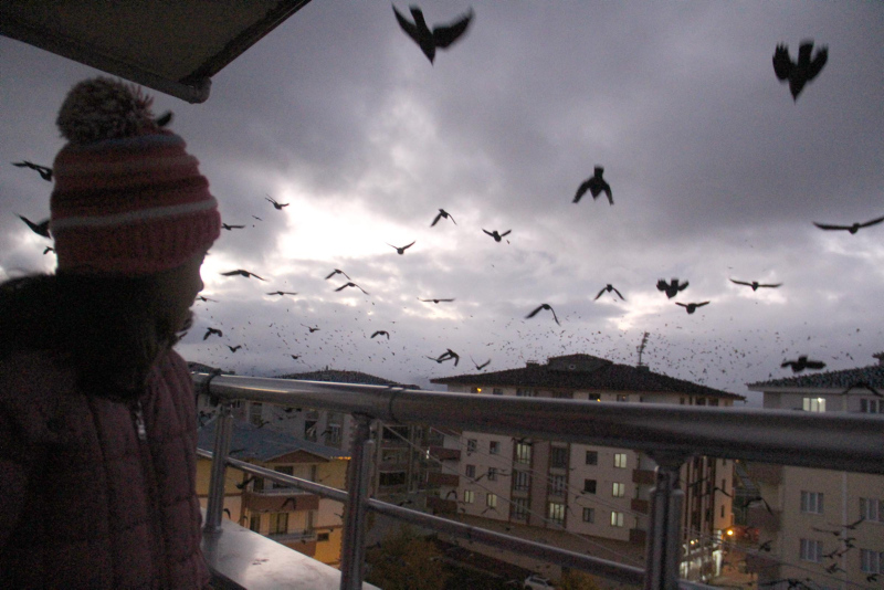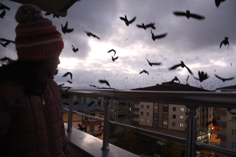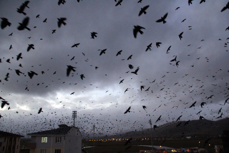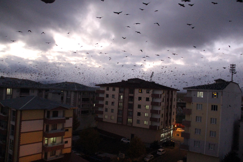 Kentte özellikle sabah ve akşam saatlerinde görülen kargalar, vatandaşları korkutuyor. Geçen yıllara göre, sayıları daha da artan kargalar, sık sık gökyüzünü kaplıyor.