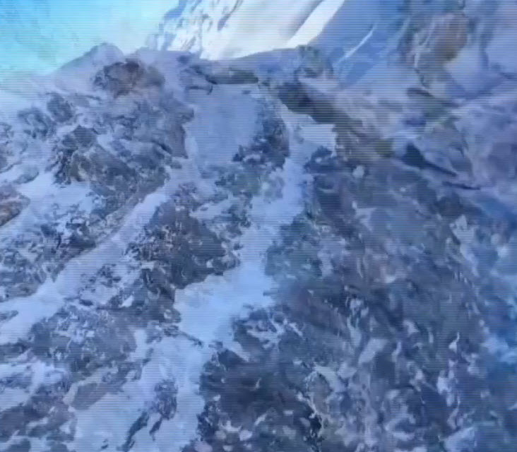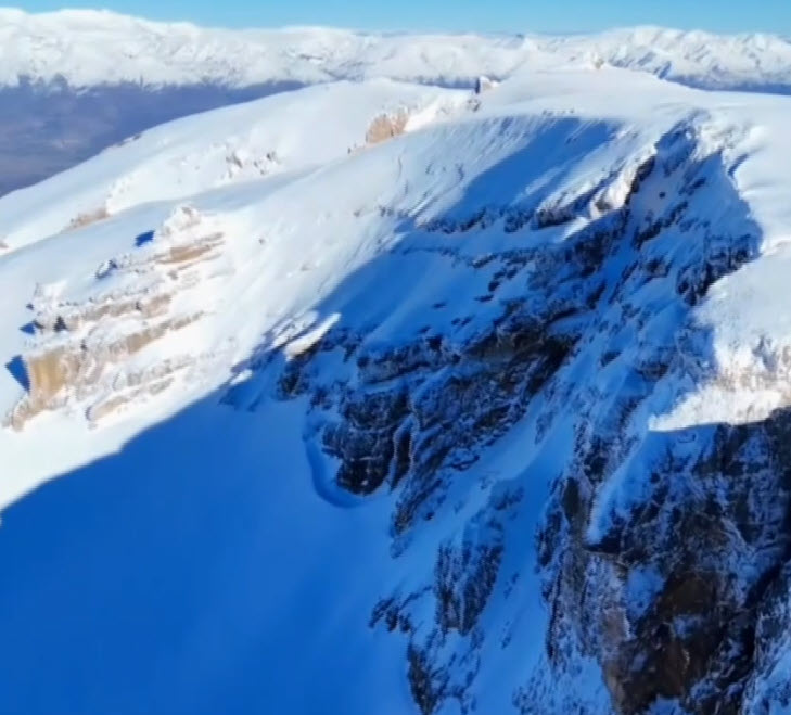 Yeter, karlı ve kayalık alanda dağ keçilerini drone ile görüntülerken bu sırada uzak mesafeden kadrajda bir kartal belirdi.