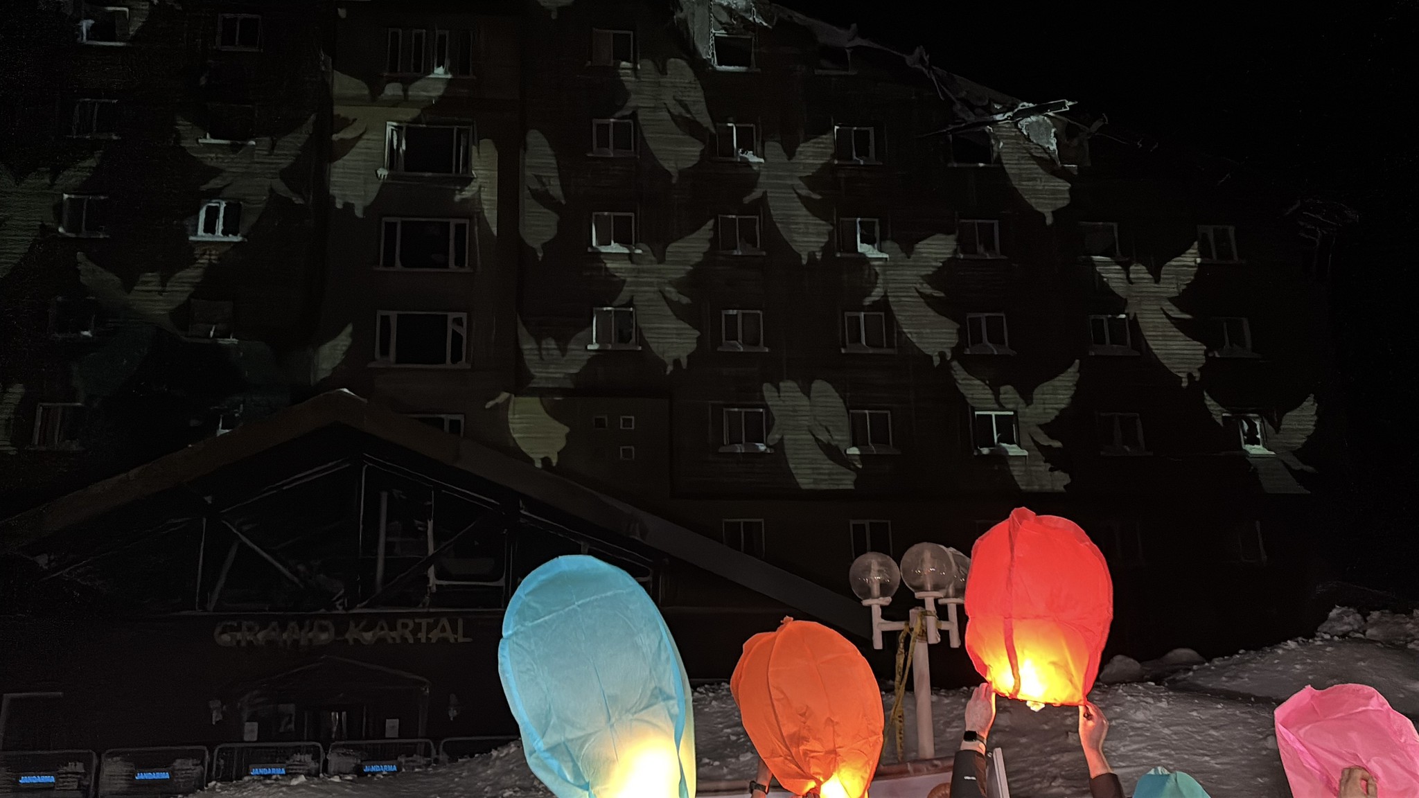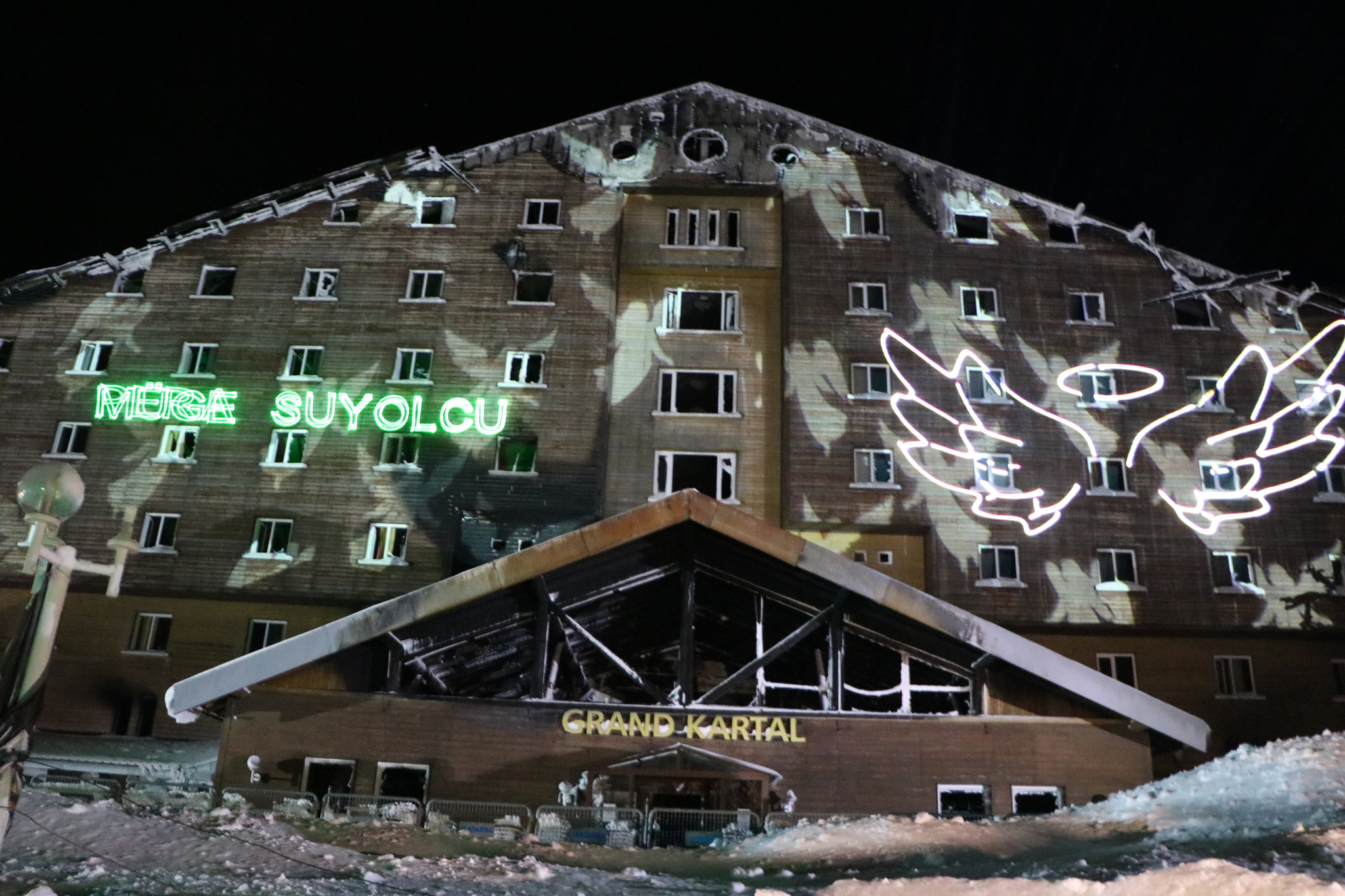 Yangında yaşamını yitirenlerin isimleri ve "melek figürleri", lazerle otelin ön cephesine yansıtıldı. Bazı ailelerin gözyaşı döktüğü ve sarılarak birbirlerini teselli ettiği görüldü.