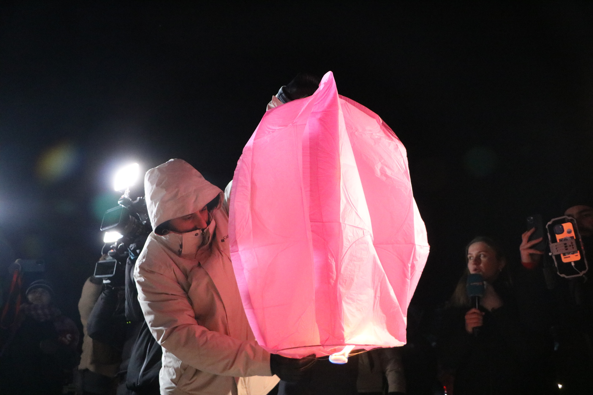 Otelin önündeki alana hayatını kaybedenlerin fotoğraflarının konulmasının ardından karanfiller bırakıldı, mumlar yakıldı, dilek balonları gökyüzüne uçuruldu.
