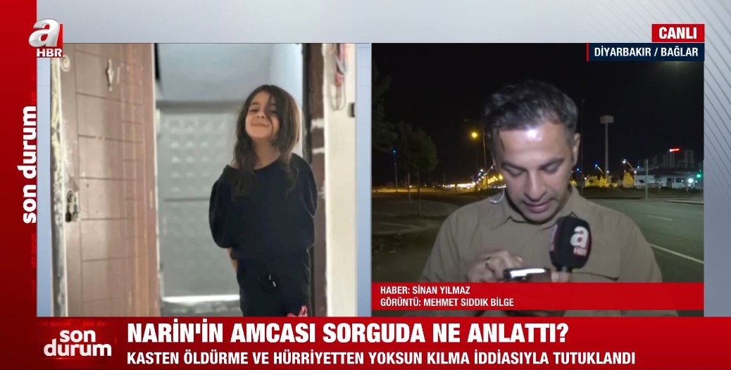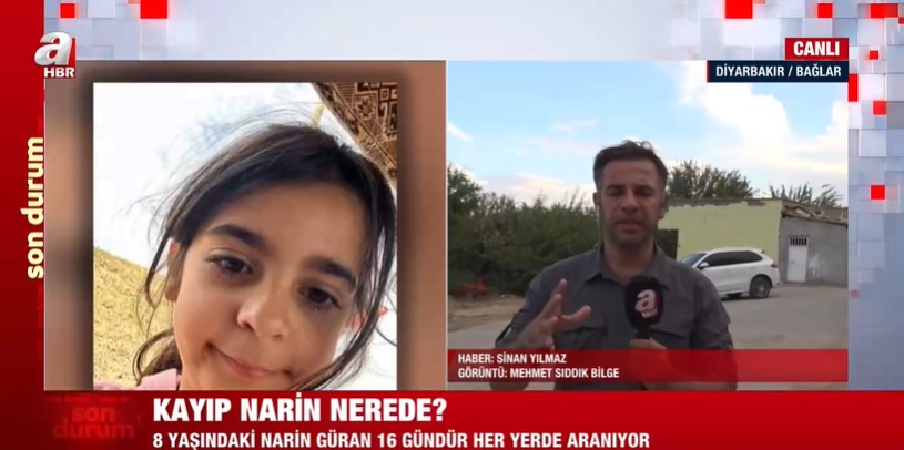 Türkiye 8 yaşındaki Narin Güran'dan gelecek haberi bekliyor. Vatandaşlar "Kayıp Narin bulundu mu?" sorusuna cevap ararken soruşturma kapsamında Ankara'dan gelen profesyonel ekip ve Jandarma Suç Araştırma Timleri (JASAT), jandarma tutanağında ortaya çıkan 12 dakikanın sırrını araştırıyor. Diğer yandan A Haber Muhabiri bölgedeki son durumu aktarırken canlı yayında "Köyde yaşayanlar tutuklamayı kabul etmiyor. Salim Güran'ın böyle bir şey yapmış olacağını akıllarından bile geçirmiyorlar. Amcaları biz mahkemeye itirazda bulunacağız, Salim Güran suçsuzdur diyorlar" dedi.