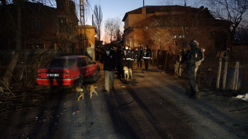 Kocasinan ilçesine bağlı Fevzioğlu Mahallesi'ni ablukaya alan ekipler, 20 farklı adrese eş zamanlı olarak şafak operasyonu düzenledi. Drone destekli ve narkotik dedektör köpeklerinin de katıldığı operasyonda, evler didik didik arandı.