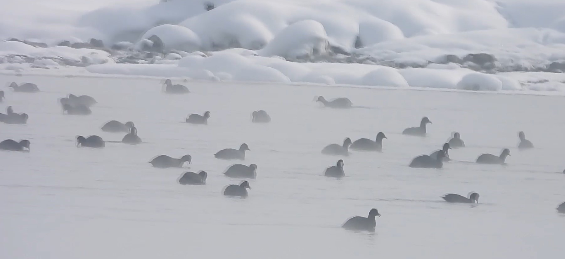 Hava sıcaklığının gece eksi 20, gündüz ise eksi 8 dereceye kadar düştüğü Çaldıran ilçesinde hayat durma noktasına geldi. Soğuk hava tüm canlıları etkilerken, Kaz Gölü'nü mesken tutan kuşlar ise yiyecek arayışına girdi.