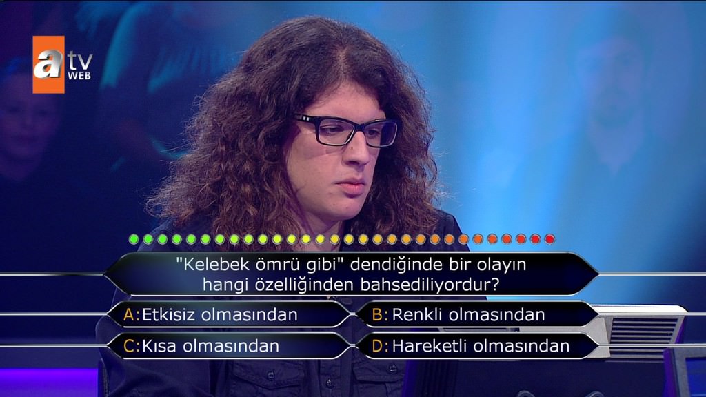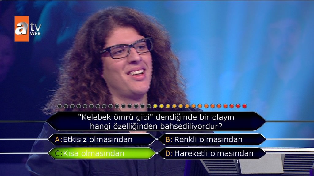 atv'nin reyting rekortmeni 'Kim Milyoner Olmak İster' yarışmasının 504. bölümüne, Türkiye'nin en iyi üniversitelerinde okuyan öğrenciler damga vurdu. Galatasaray Üniversitesi'nde öğrenim gören Zeliha Kalay, ilk iki soruda zorlandı. Ancak tüm jokerlerini kullanarak engeli aştı. Üçüncü soruda ise Pi sayıyı soruldu. Uzun süre düşünen genç kız, '3' yerine '1' dedi. Pi sayısını bilemeyen ve elenen Kalay, şaşırttı. Yarışmanın ilk bölümlerinde sorulan en kolay soruları bilemeyen Galatasaray Üniversitesi öğrencisi, Twitter'da alay konusu oldu. Yarışmaya katılan bir Boğaziçili ve Bahçeşehir Üniversitesi'nde okuyan öğrenci de barajı geçemeden elendi. Sosyal medya yıkıldı.