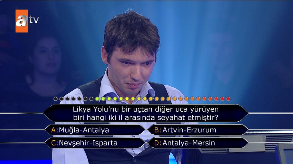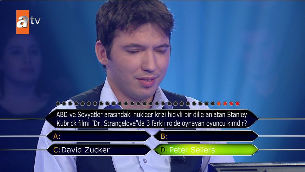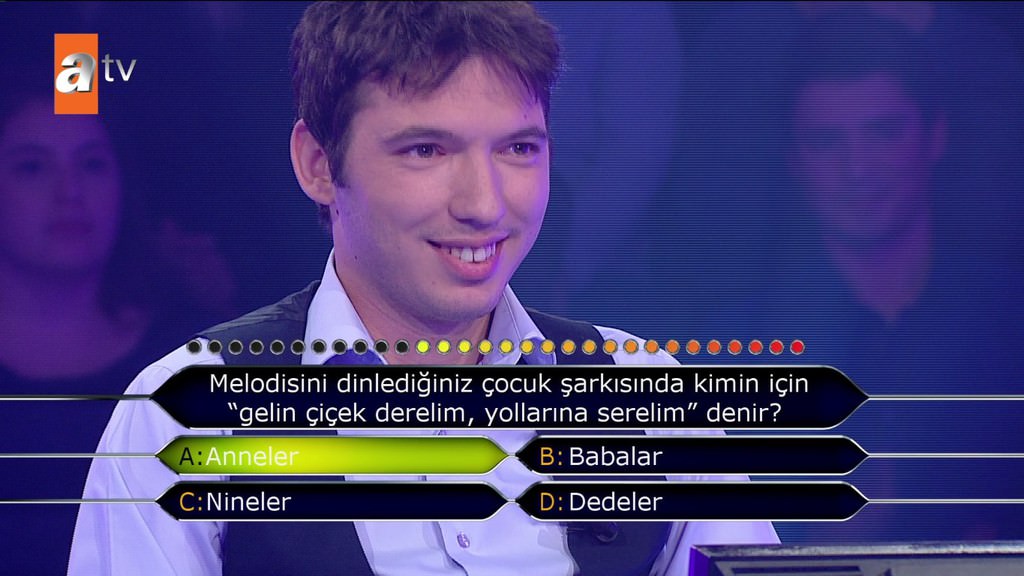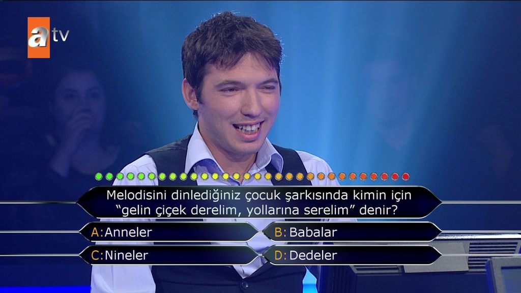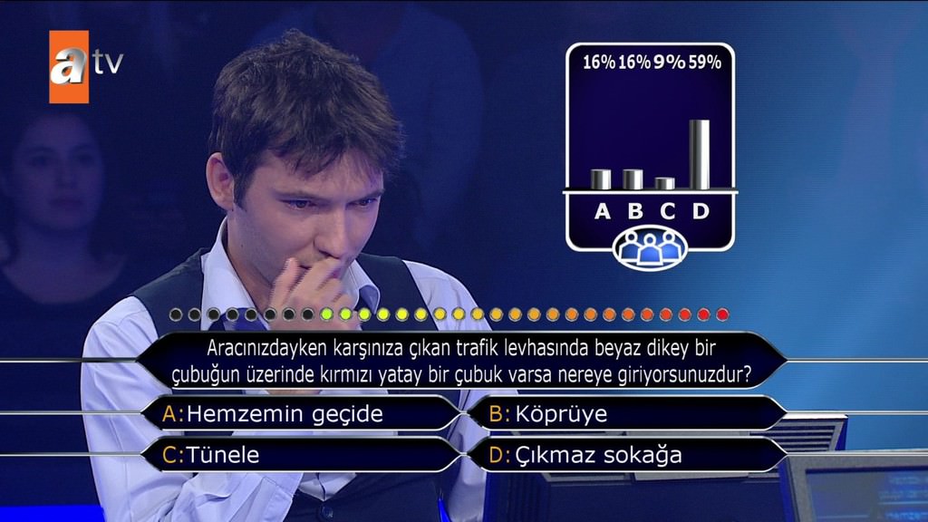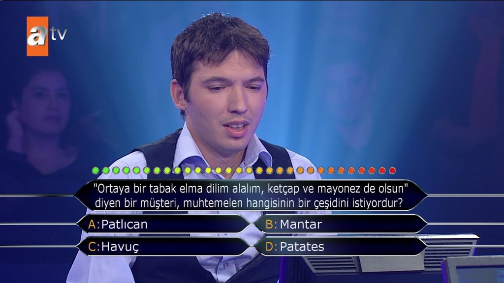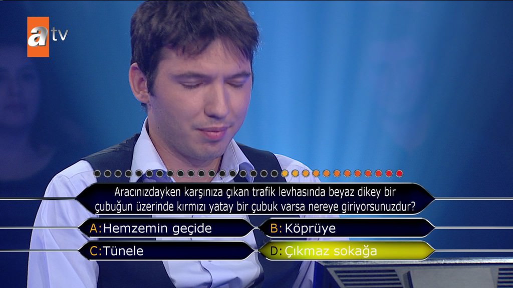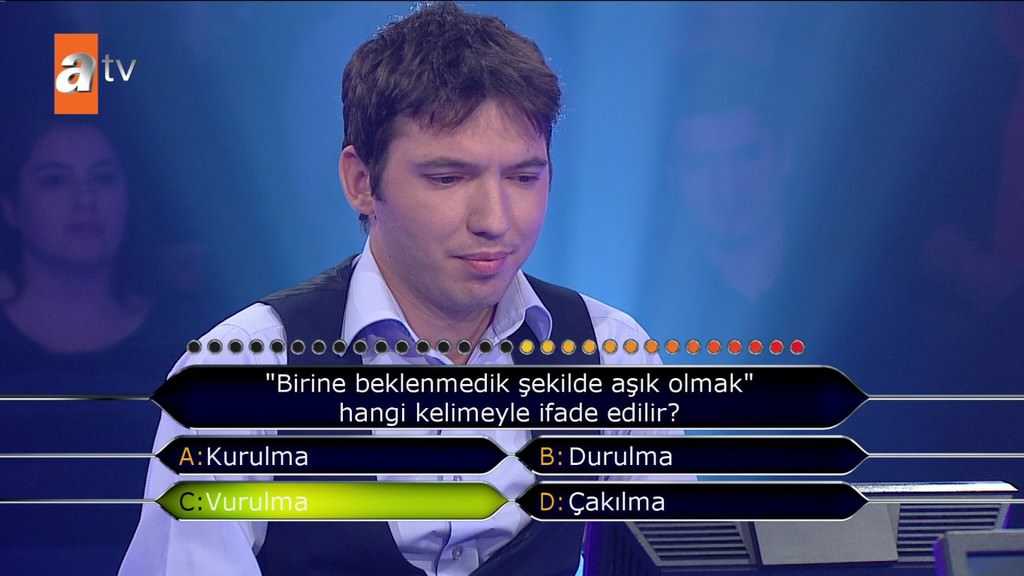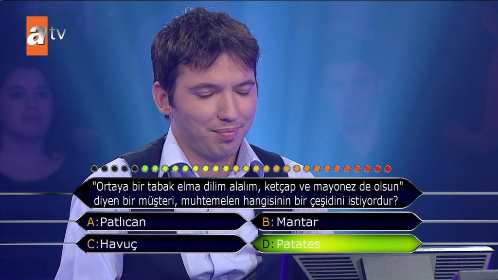 'Standart bir okey oyununda toplam kaç taş bulunur?' sorusuna emin olmadığı halde joker kullanmadan cevap veren yarışmacı elendi. Selçuk Yöntem de 'Bilmiyorsun 4 renk 2'şer sette tam 13 rakam var. Niye sormuyorsun telefonda birisine veya yüzde 50 yapmıyorsun? Neden 52 dedin? Fikrin olmadığı halde neden yardım istemedin' diye sordu.