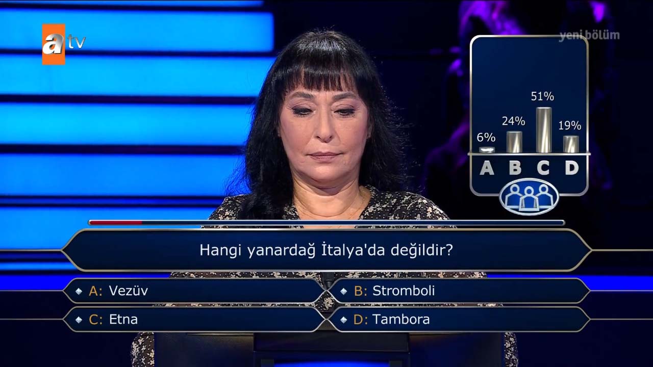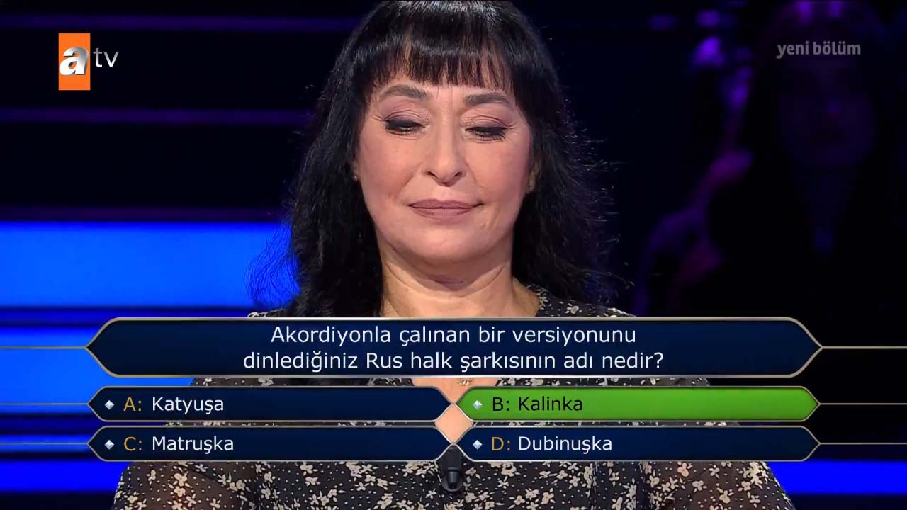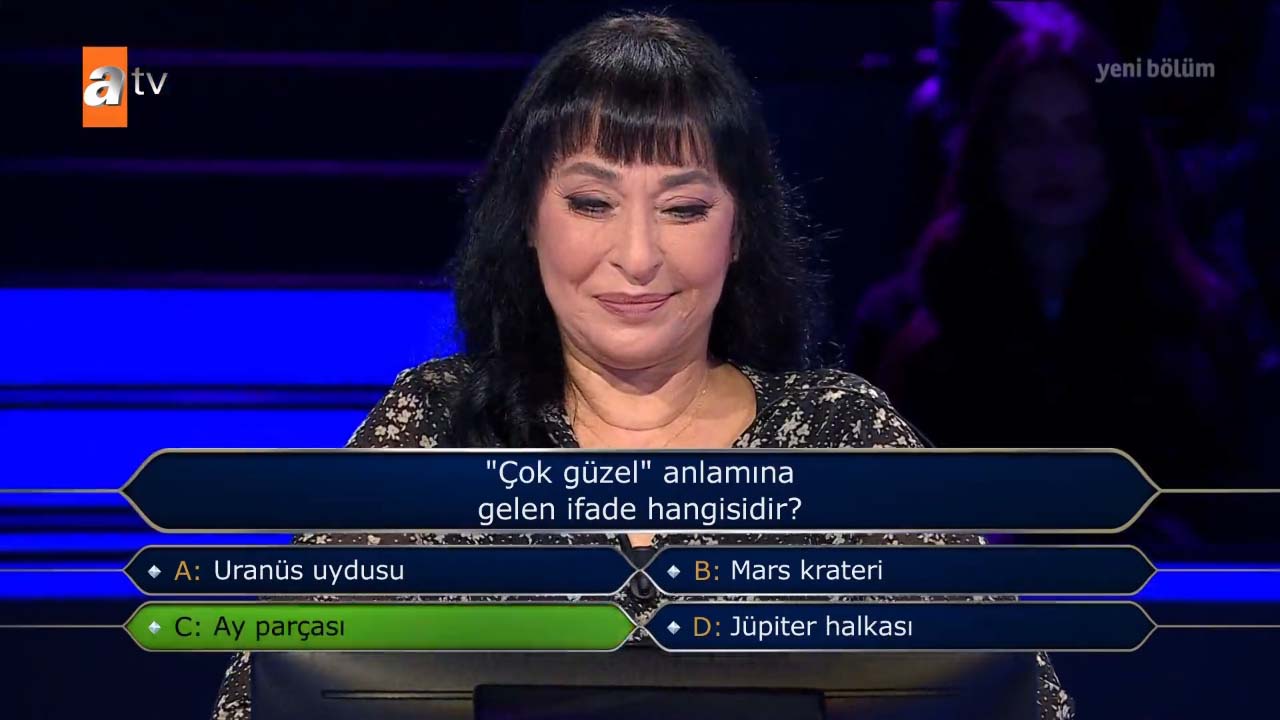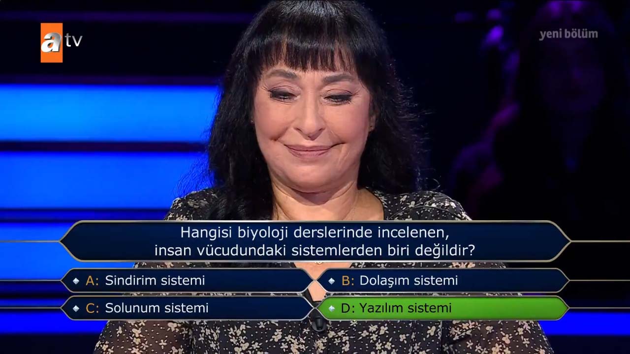 Kenan İmirzalıoğlu'nun sunumuyla ATV'de ekrana gelen Kim Milyoner Olmak İster'in 7 Kasım Pazar 2021 tarihli yayını heyecan dolu anlara sahne oldu. Yarışmaya katılan Aslı Şengül, yarışma boyunca verdiği cevaplarla başarılı bir performans sergiledi. Şengül, 100 bin lira barajına kadar ulaştı. Yarışmacı 200 bin TL'lik soruyu açtırdı, ancak acele karar veren yarışmacı verdiği cevapla herkesi şoke etti. İşte o anlar...