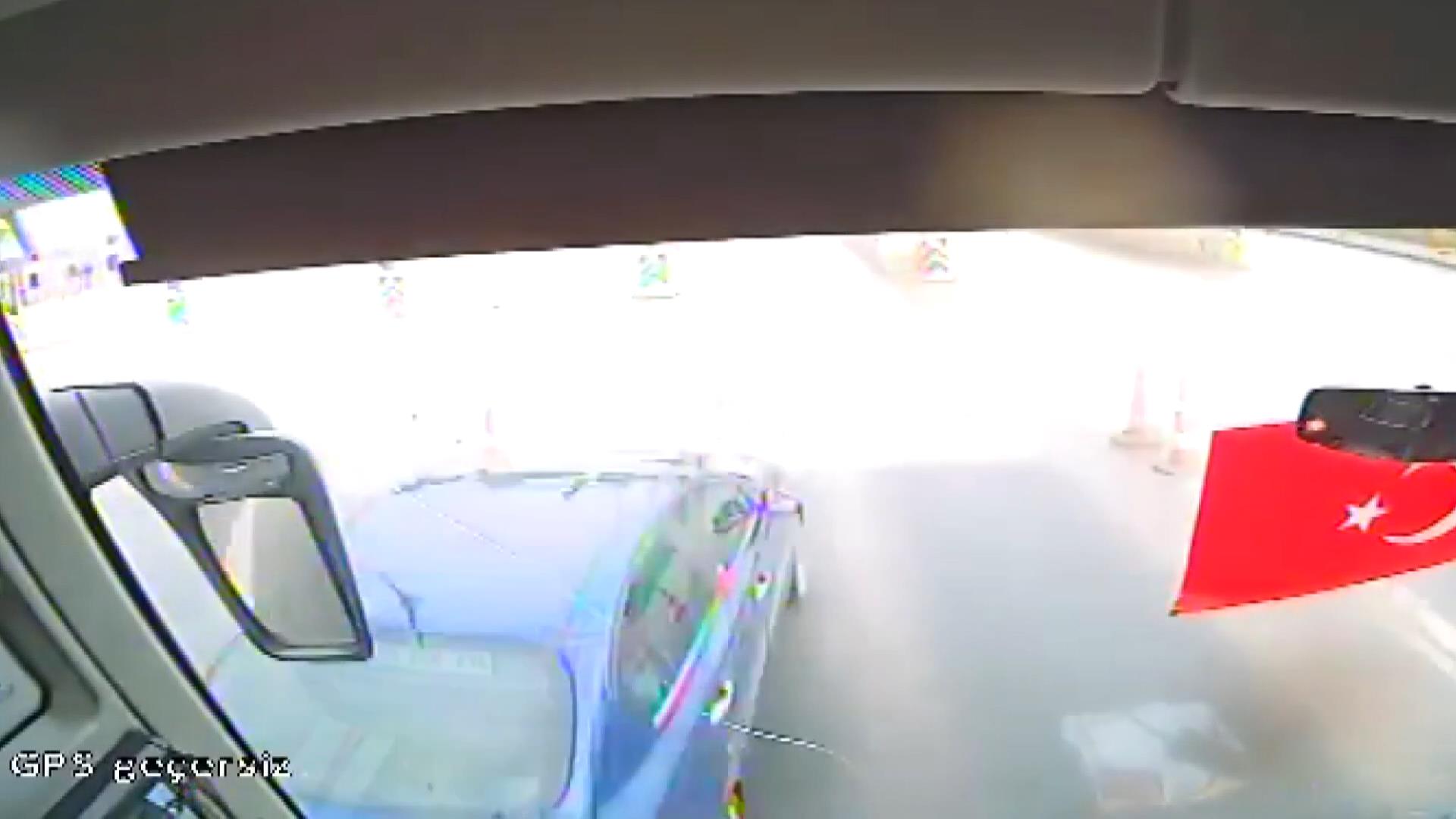 İstanbul Silivri Kuzey Marmara Otoyolu'nda Kınalı Gişeleri girişinde 2 kişinin hayatını kaybettiği ve 1 kişinin yaralandığı kazanın otobüs içi kamera görüntüsü ortaya çıktı.