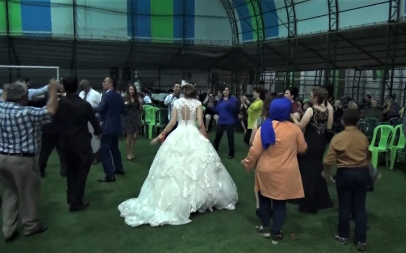 Bu durumun üzerine salon sahipleri genç çifte düğünlerini 40 metre ilerideki halı sahada yapabileceklerini belirtti.