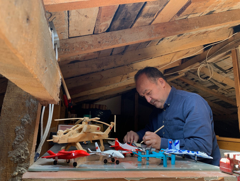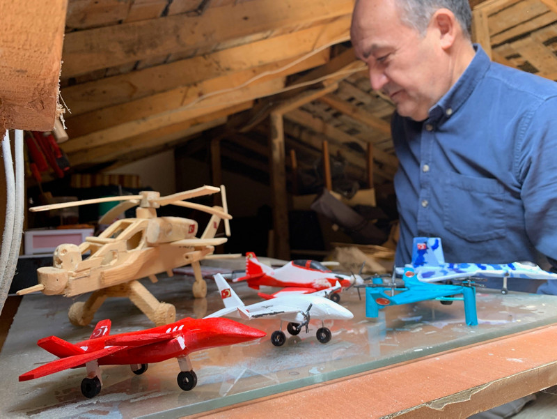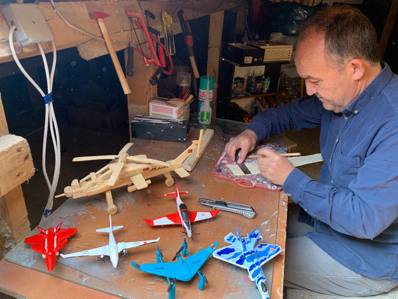 Eskişehir'de yaşayan Gültekin Kuralay, tavan arasında meyve kasalarından, Kızılelma, Milli Muharip Uçak TFX, Akıncı TİHA gibi birçok milli hava aracının maketini yaparak adeta Türk filosu kurdu.