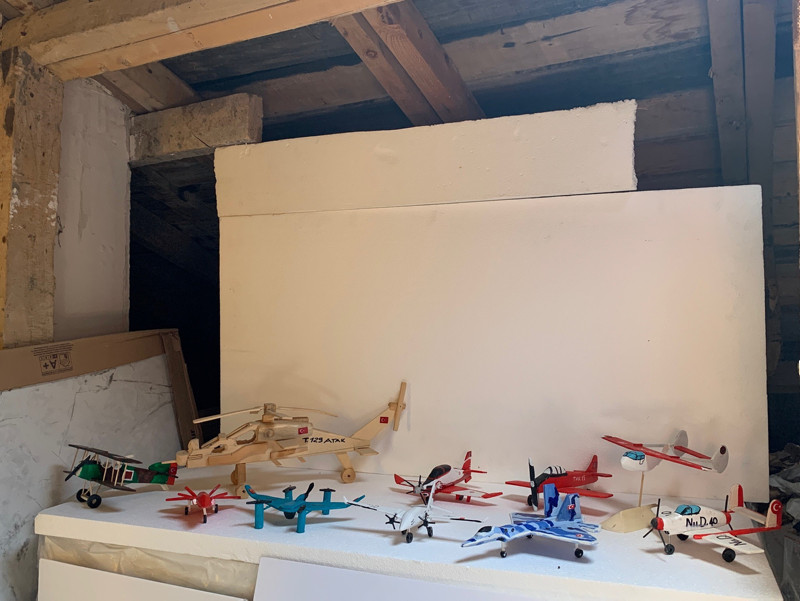 Kuralay'ın tavan arasındaki maket Türk uçağı filosunda; insansız hava aracı Kızılelma, Milli Muharip Uçak TFX, Akıncı TİHA, DİHA, T-129 Atak helikopteri, Hürjet ve hafif saldırı uçağı olan Hürkuş bulunuyor.