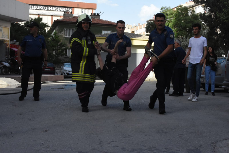 Konya'da, apartmanın 1'inci katında oturan M.A., adlı erkek çocuk, belirlenemeyen nedenle evlerinde yangın çıkmasına neden olurken, tahliye sırasında asansörde mahsur kalan 4 kişilik Çelik ailesi, dumandan etkilendi.