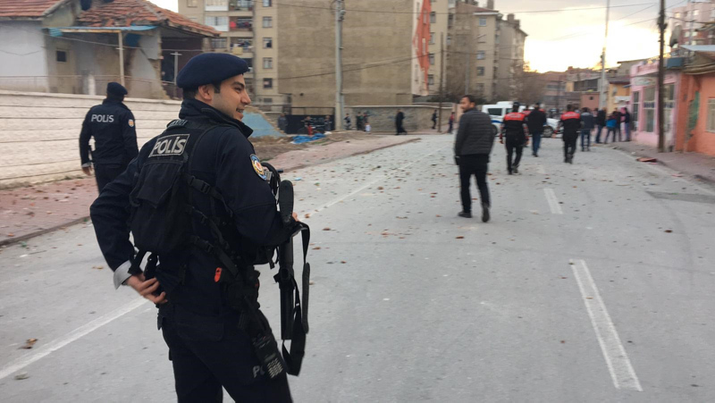 Konya'da, komşu iki ailenin fertleri arasında belirlenemeyen nedenle çıkan kavgada, evlerin çatılarından birbirlerine taş, kiremit, cam şişe fırlatmaları üzerine cadde savaş alınana döndü.