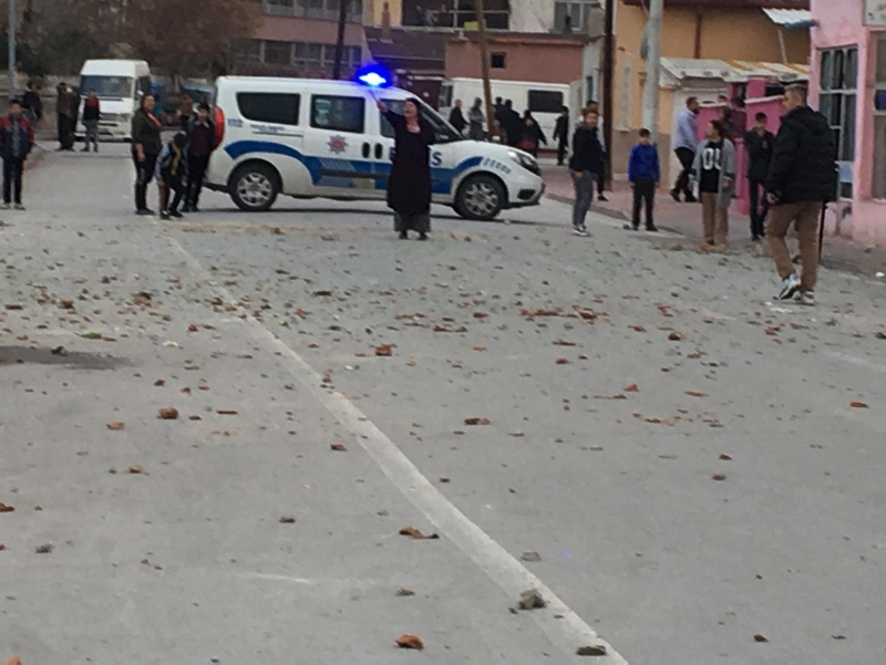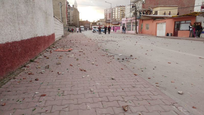Ailelerinin yakınlarının katılması üzerine tartışma kavgaya dönüştü. Tek katlı müstakil evlerin çatılarına çıkan gruplar, birbirlerine taş, kiremit ve cam şişe fırlattı.