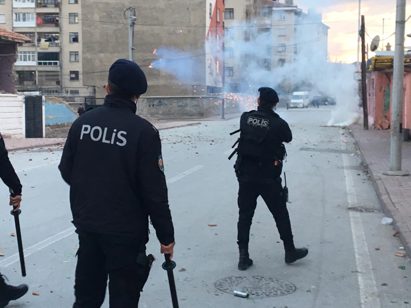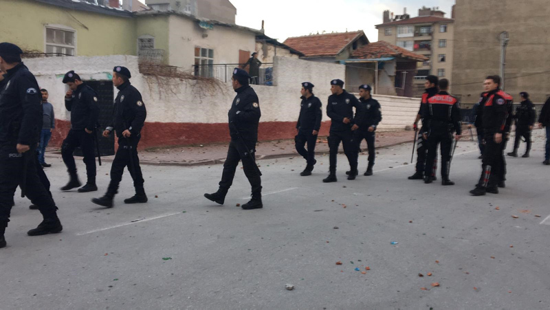 Bunun üzerine başta Çevik Kuvvet olmak üzere yaklaşık 200 polis sevk edildi. Polis, öfkeli grupları sakinleştiremeyince biber gazı ve gaz bombası fişeği kullanarak uzaklaştırma çalıştı.