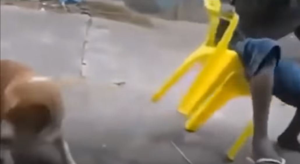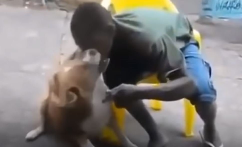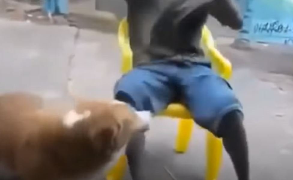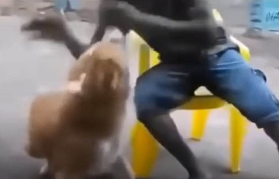 Köpek ile fotoğraf çektirmek isteyen genç adam dehşeti yaşadı. Köpek tarafından beklemediği anda yüzü ısırılan adam oturduğu sandalyeden yere düşerken, köpek olay yerinden hemen uzaklaştı. O anlar ise kameralara böyle yansıdı.