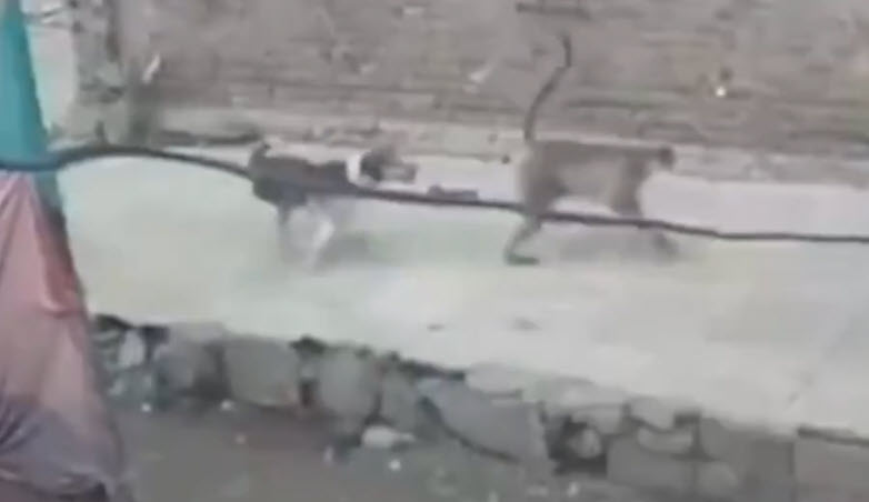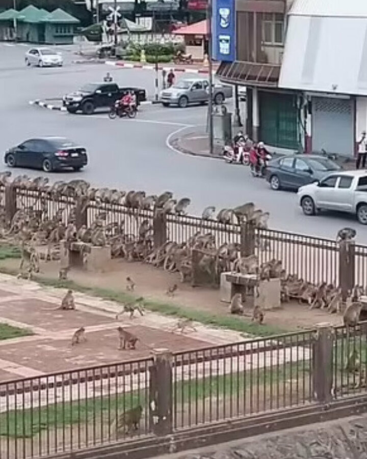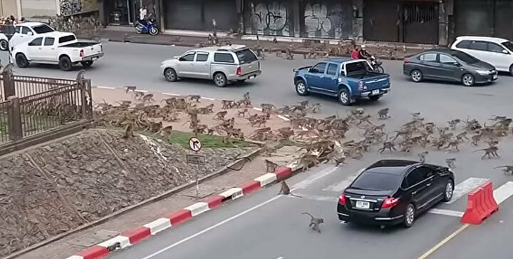 Yüzlerce maymun, yiyecek bulmak için kente indi. Maymunların yiyecek için birbirine saldırdığı anlar, kameralara yansıdı.