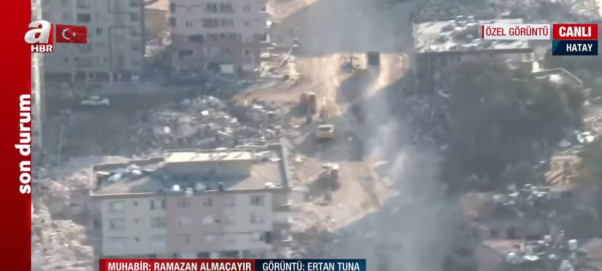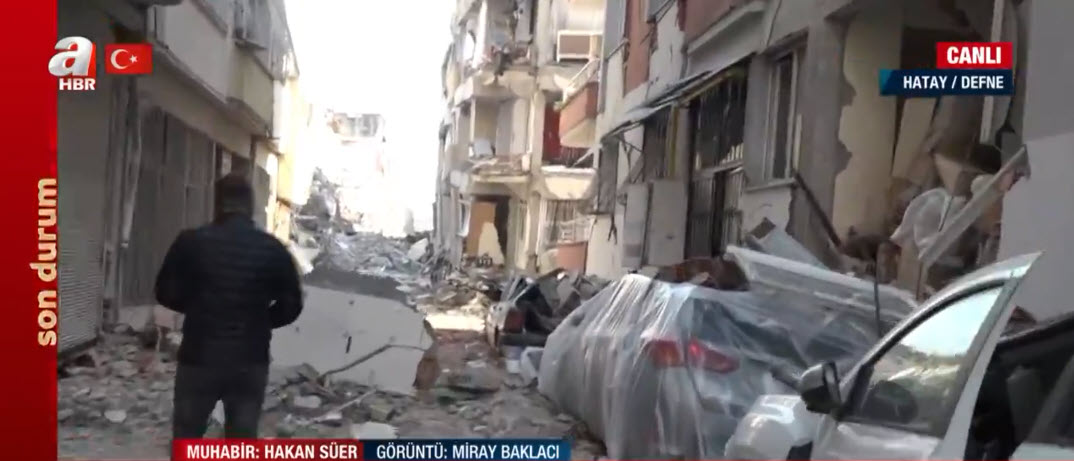 Asrın felaketinin vurduğu bölgede binalar yıkık ve ağır hasarlı. A Haber muhabiri Hakan Süer, Hatay Defne'den son durumu aktardı. Depremin şiddetini gözler önüne seren görüntüler kayda geçti. A Haber İstanbul İstihbarat Şefi Ramazan Almaçayır da Hatay'daki yıkımı helikopterden aktardı. İşte o görüntüler...