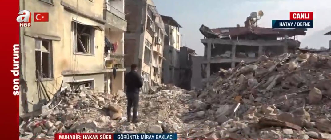 Bölgede binalar yıkık ve ağır hasarlı. A Haber muhabiri Hakan Süer, Hatay Defne'den son durumu aktardı.