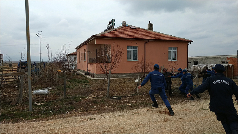 Jandarma ekipleri ise Kadıoğlu'nu gözaltına alıp, eşini ve çocuğunu evden uzaklaştırdı.