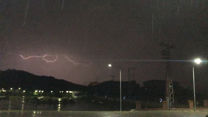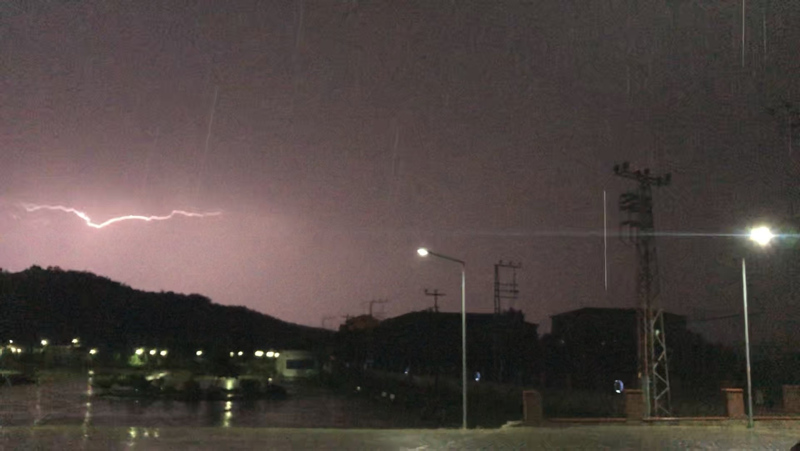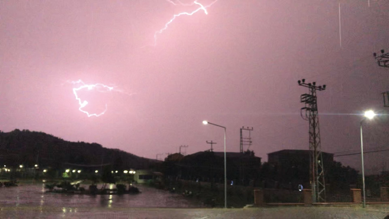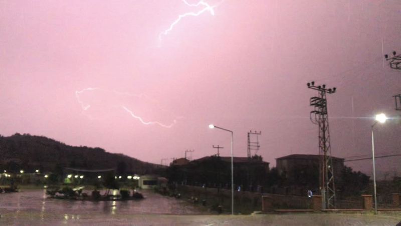 Akşam saatlerinde başlayan yağmurla birlikte çakan şimşekler, gökyüzünü aydınlatırken görsel şölen oluşturdu.
