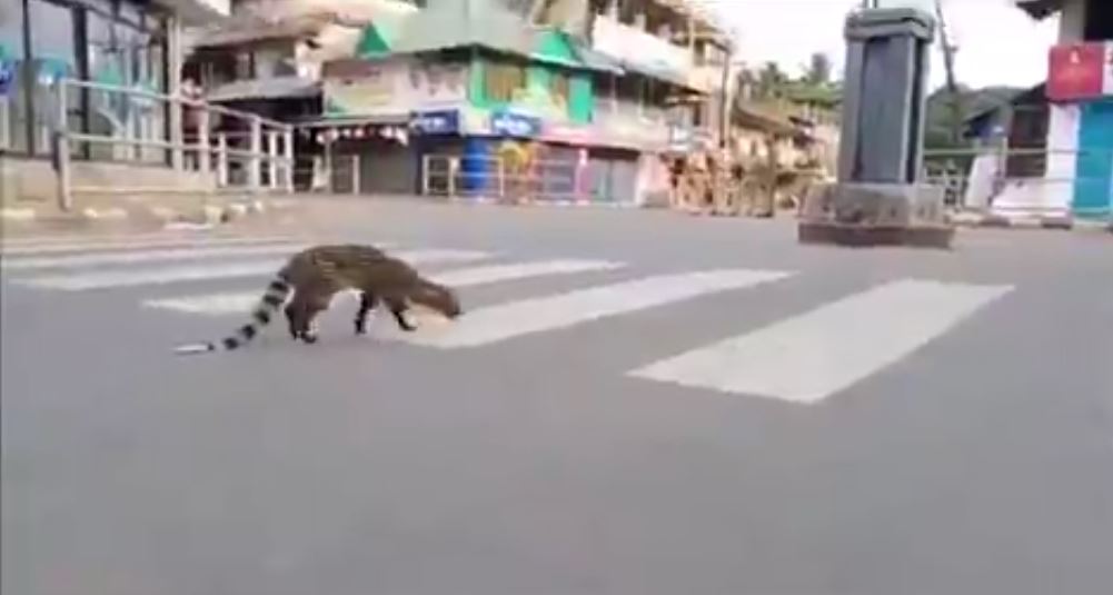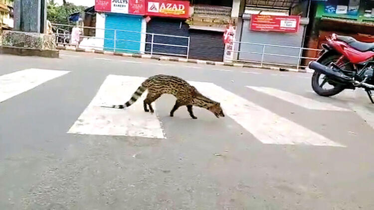 Hindistan'da sokağa çıkma yasaklarıyla birlikte 1990'lardan bu yana nesli tükenme tehlikesiyle karşı karşıya olduğu belirtilen Malabar misk kedisi sokağa indi. Görüntülerde kedinin ağzının açık olması hasta olduğu şeklinde yorumlandı.
