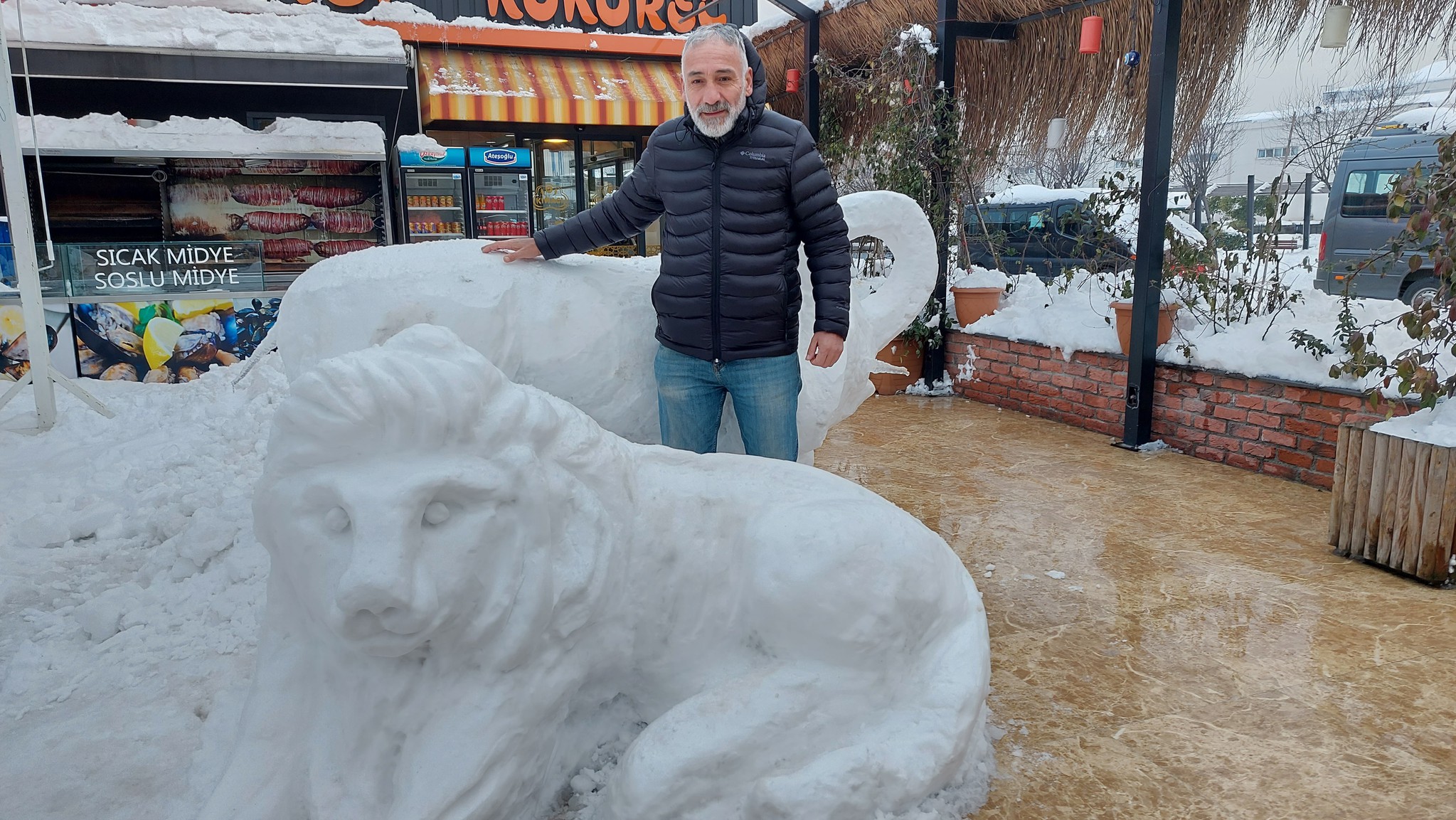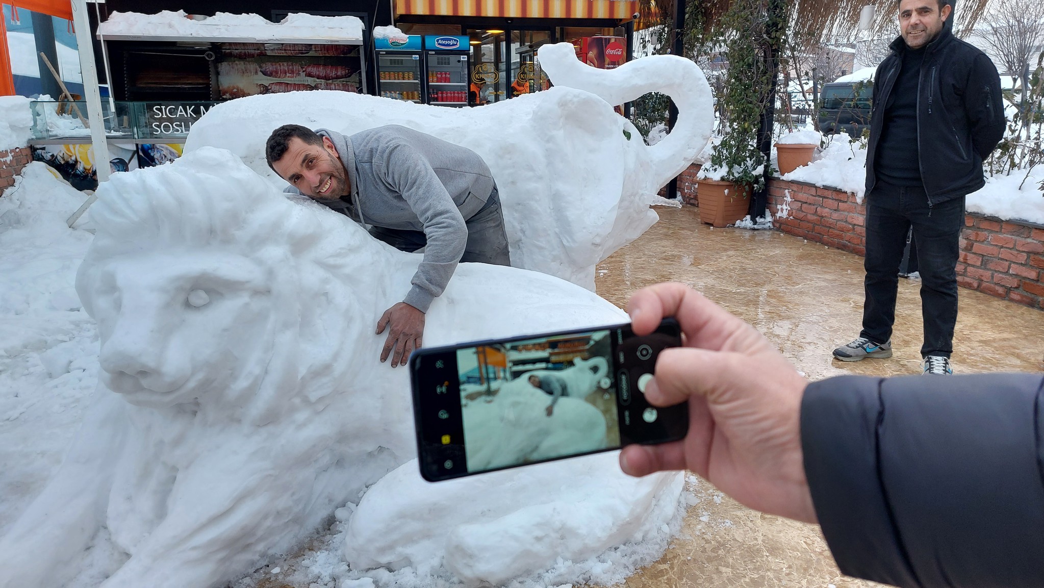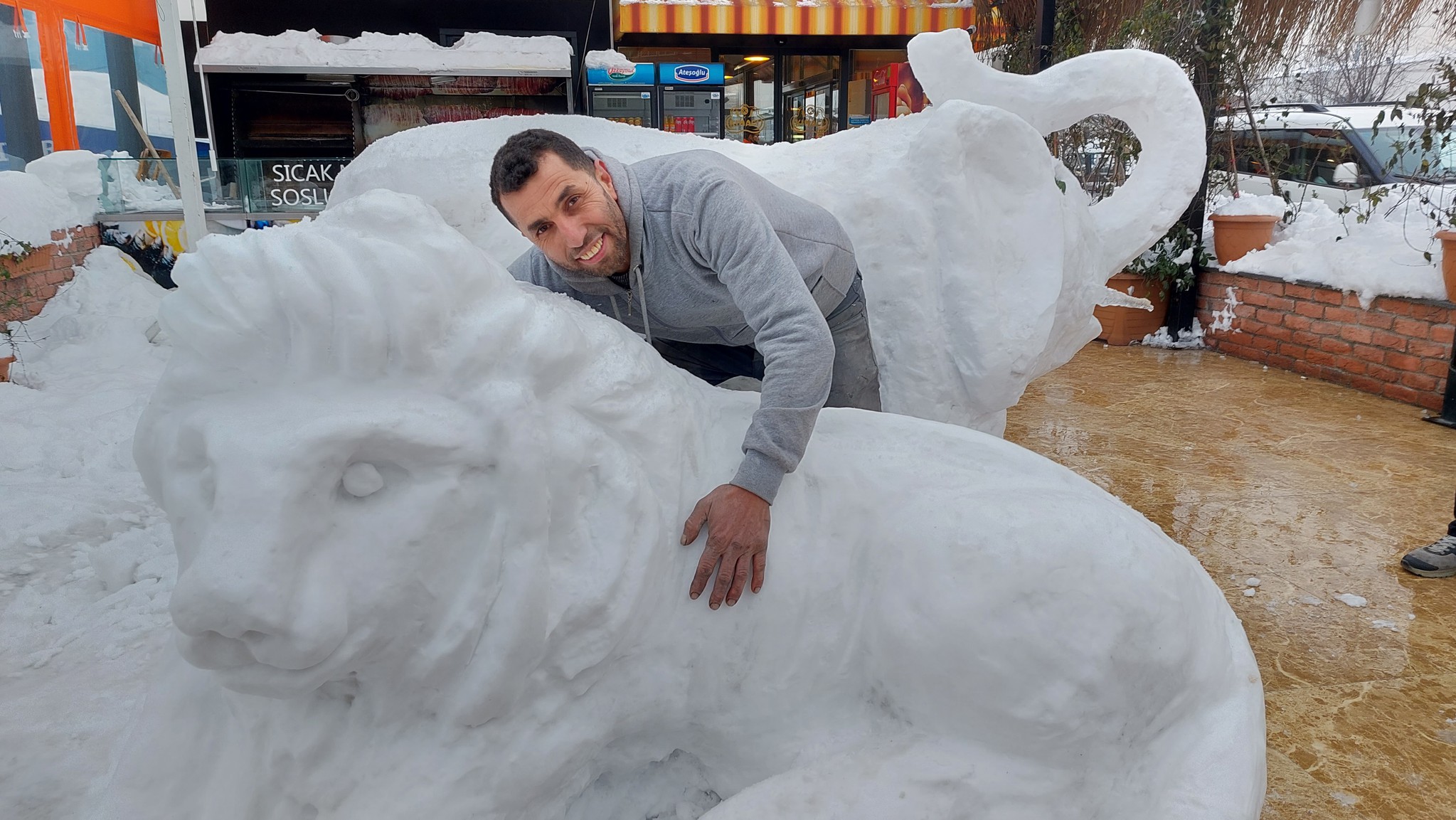 Çocukluktan gelen heykel sanatçılığını konuşturan Alaattin Dayandı isimli başka bir vatandaş ise, işletmesinin bahçesinde kardan insan kafası, aslan ve fil yaptı. Her biri yaklaşık 2 saatte tamamlanan kardan heykeller, yoldan geçenlerin ilgi odağı oldu. Kimisi şaşkınlığını gizleyemezken kimisi de sarılıp fotoğraf çektirdi.