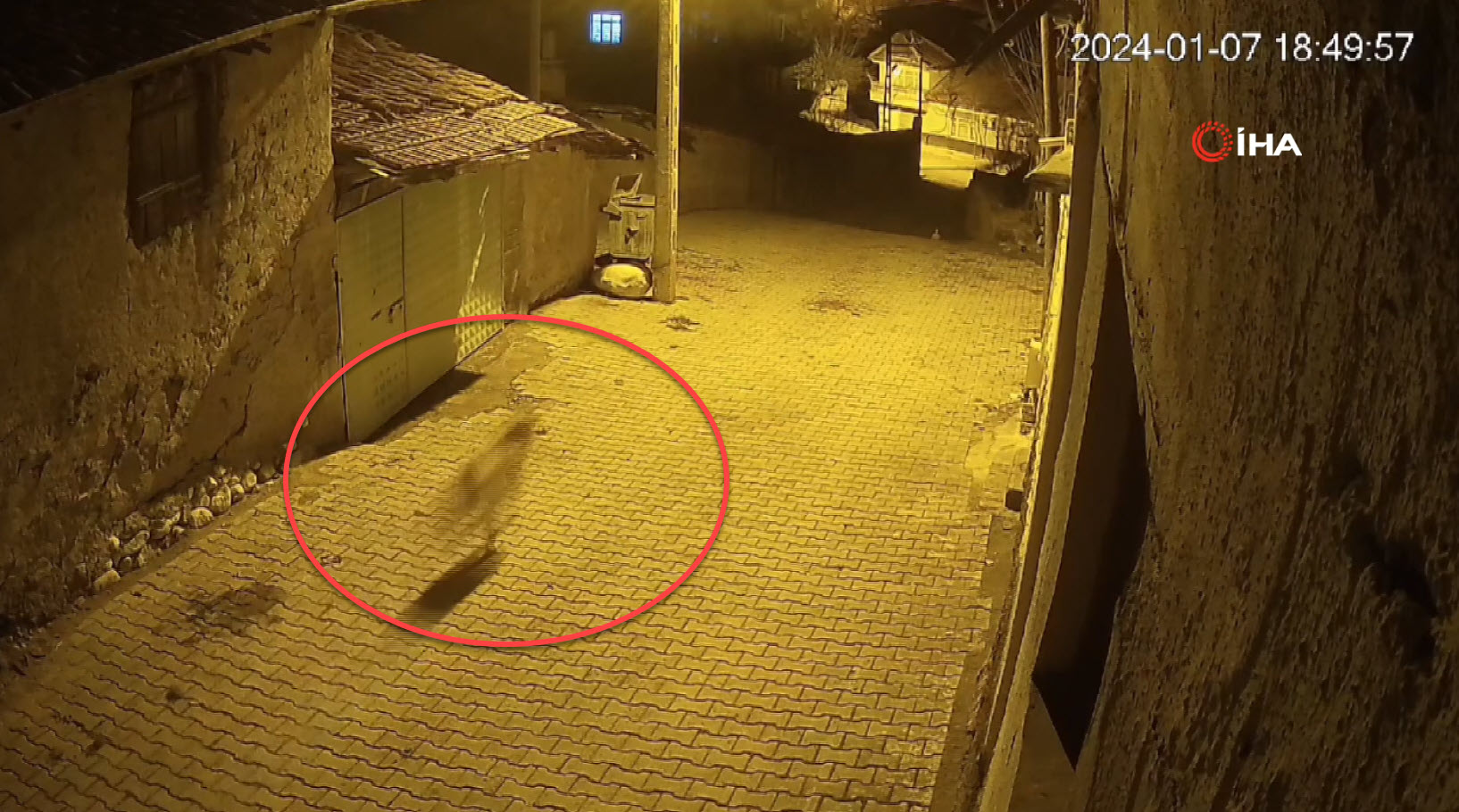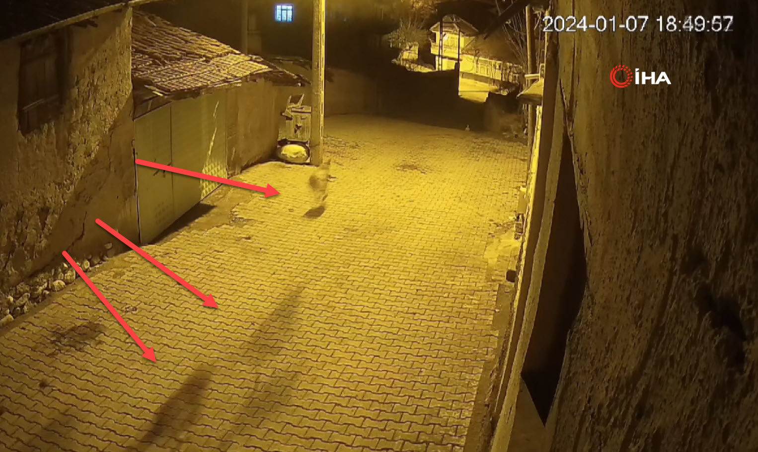 Bu anlar güvenlik kamerasına yansıdı. Güvenlik kamerasınca kaydedilen görüntülerde aç kurtlar, Burak Baltacı'ya ait köpeğe saldırdı.