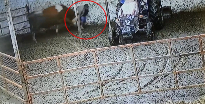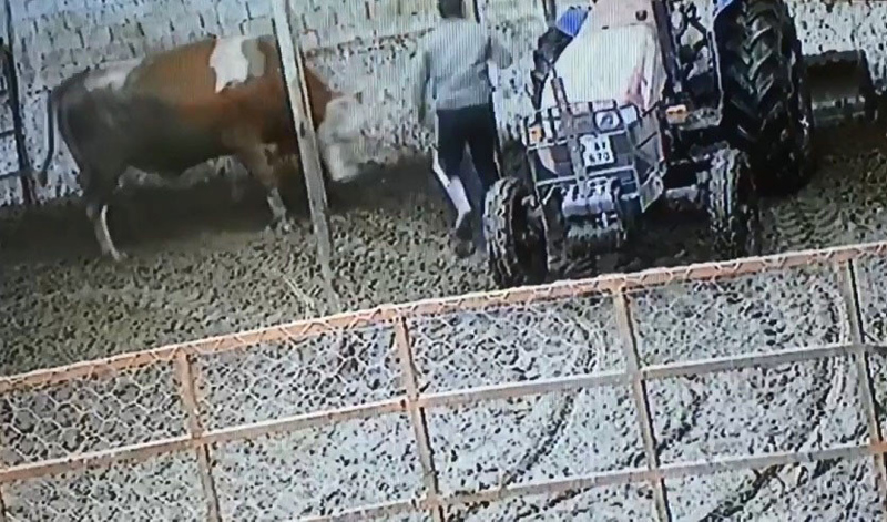 Besihane içerisinde Onat'ı kovalamaya başlayan boğa, attığı boynuz darbesiyle çiftçiyi yere serdi.
