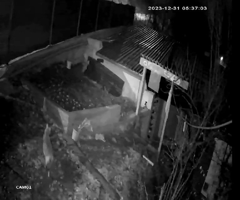 Karabük'te aç kalan kurt ile sansarın bir evin bahçesine girdiği anlar güvenlik kamerasında yansıdı. İşte o görüntüler…