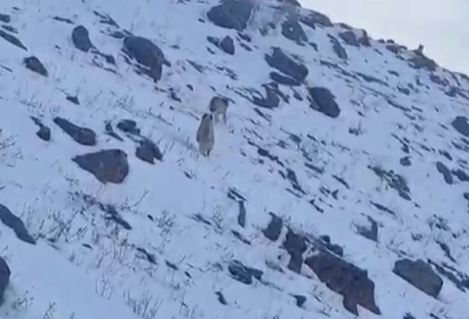 Ardahan'ın Hanak ilçesine bağlı Çat köyünde ikamet eden ve bir şantiyede iş makinası operatörü olarak görev yapan Caner Değirmenci, yol açma çalışması yaparken iki kurt ile karşılaştı.