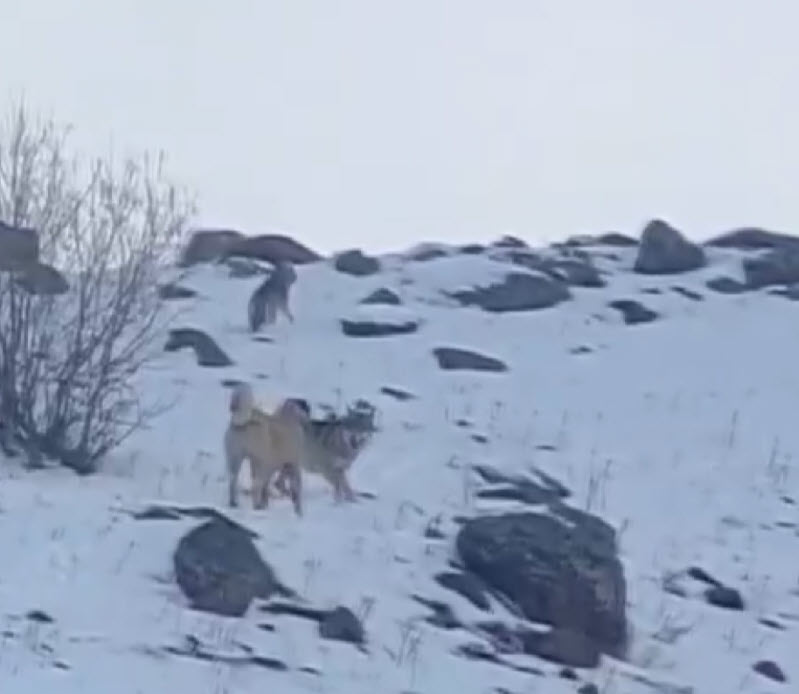 Ardahan'ın Hanak ilçesi kırsalında kurdun köpeğe saldırısı vatandaşın cep telefonuna yansıdı. Operatörün köpeği ile kurtların kapışmasını çektiği görüntü sosyal medyada tepki topladı.