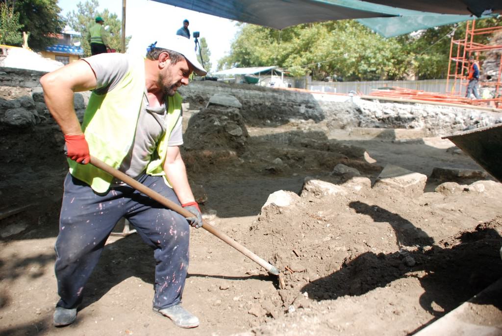 Börekçiler Mahallesi'nde tarihi Ulu Cami avlusunun arka kısmında bulunan tarihi hamamın açığa çıkartılması için 25 kişilik ekiple kazı çalışması yürütülüyor.