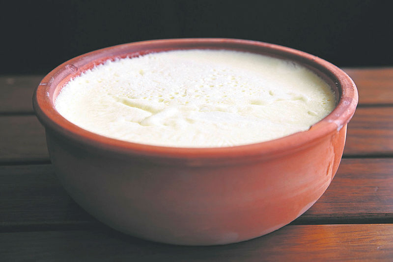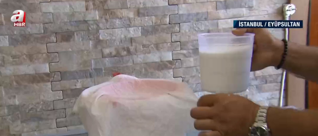 -İnce tülbentten geçireceğiz çünkü mandalar yaz aylarında çamurda yattıkları için kum tarzı şeyler olabilir. Tülbentten geçirerek süzeceğiz.