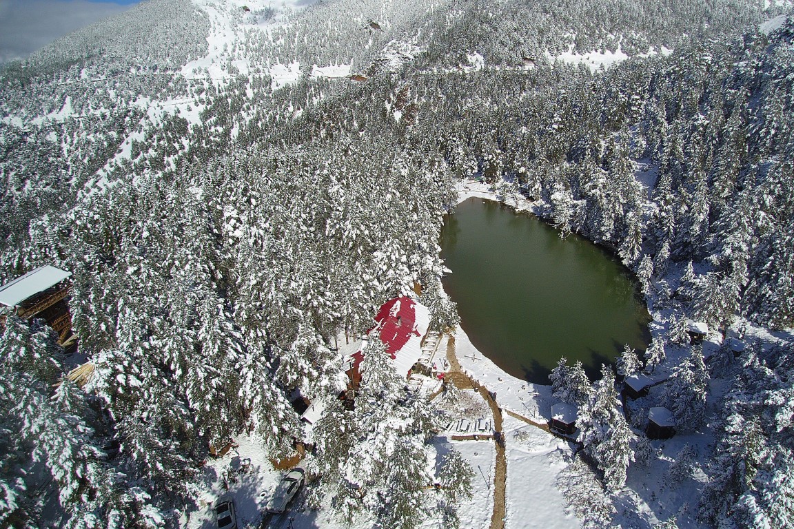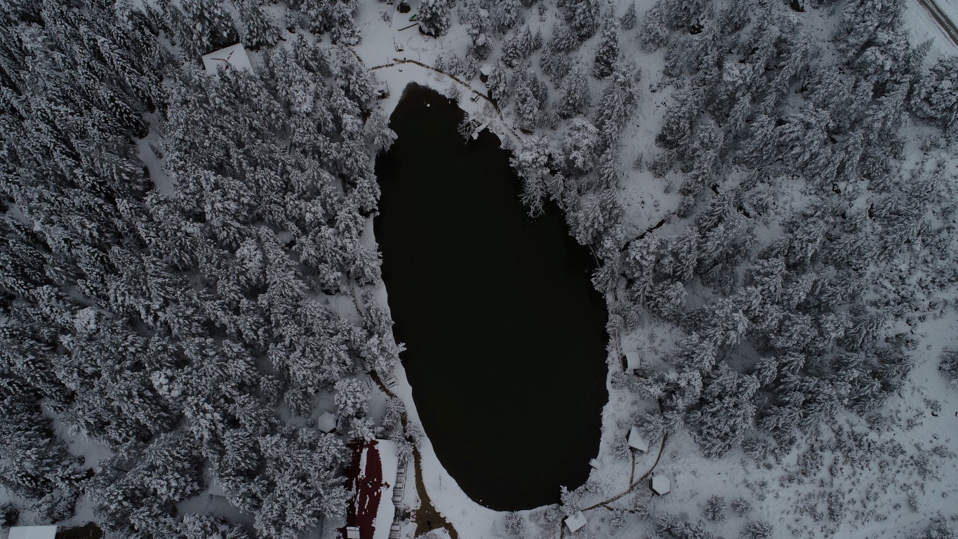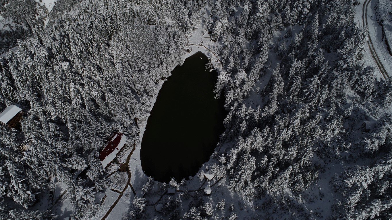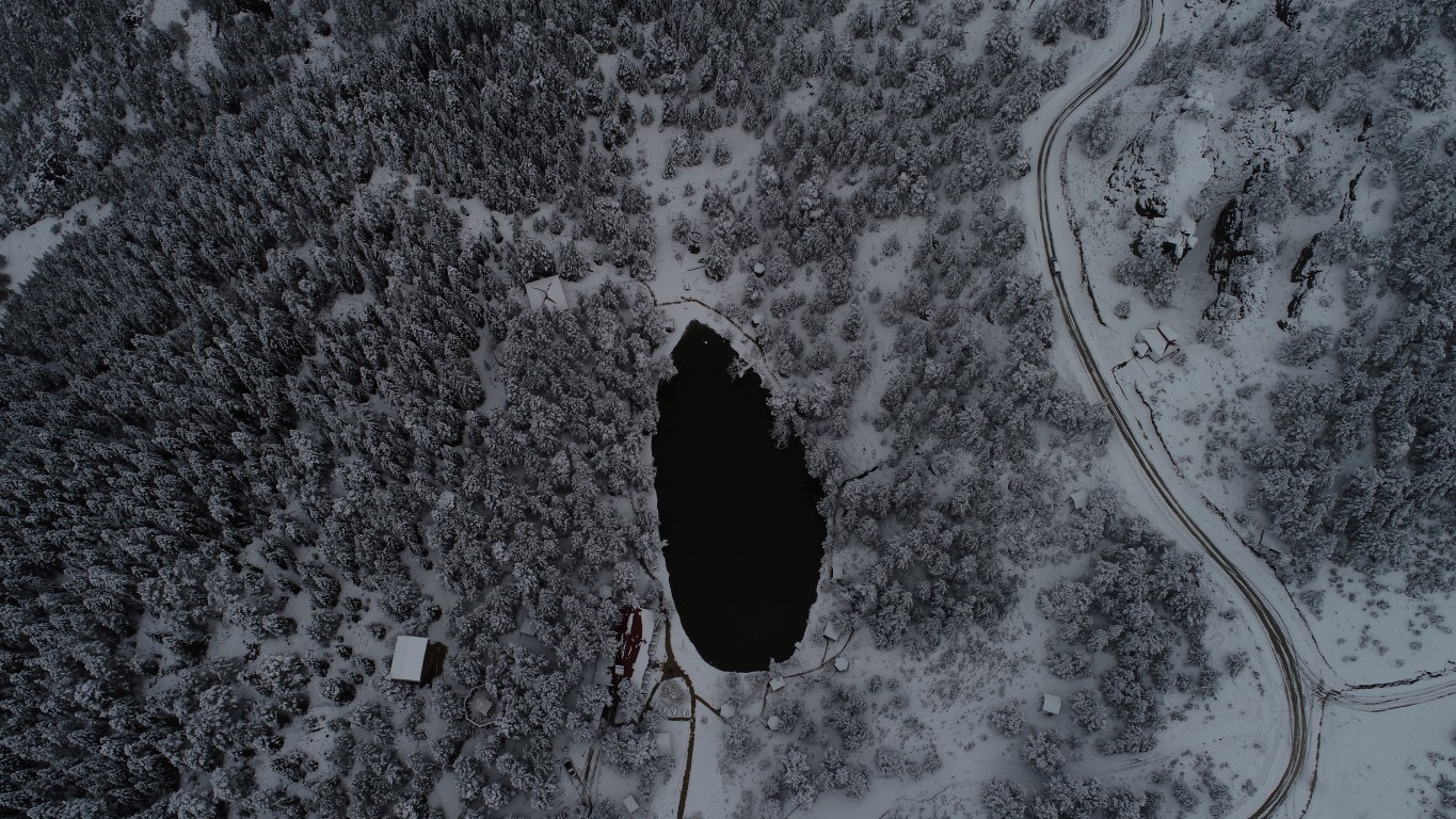 Gümüşhane'nin Torul ilçesine bağlı Zigana köyü sınırlarında bulunan Limni Gölü Tabiat Parkı önceki gün gerçekleşen kar yağışının ardından beyaza büründü. Eşsiz güzelliklerin ortaya çıktığı bölge havadan görüntülendi.