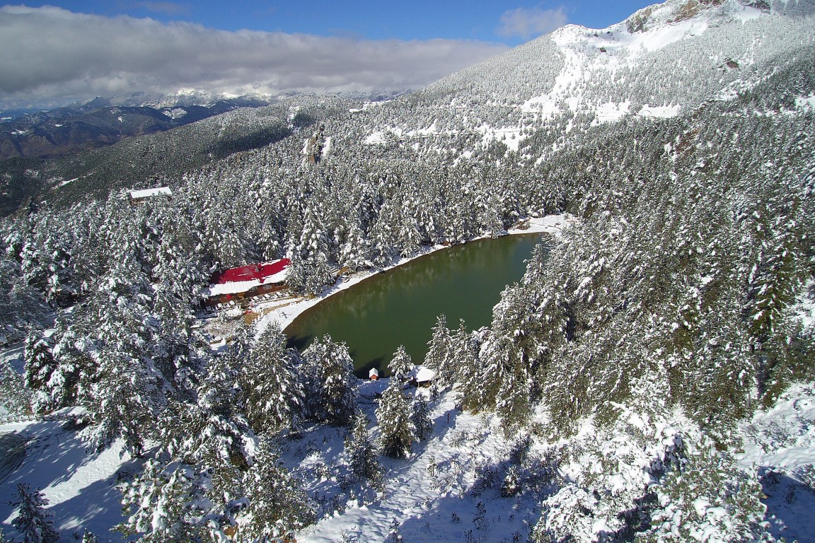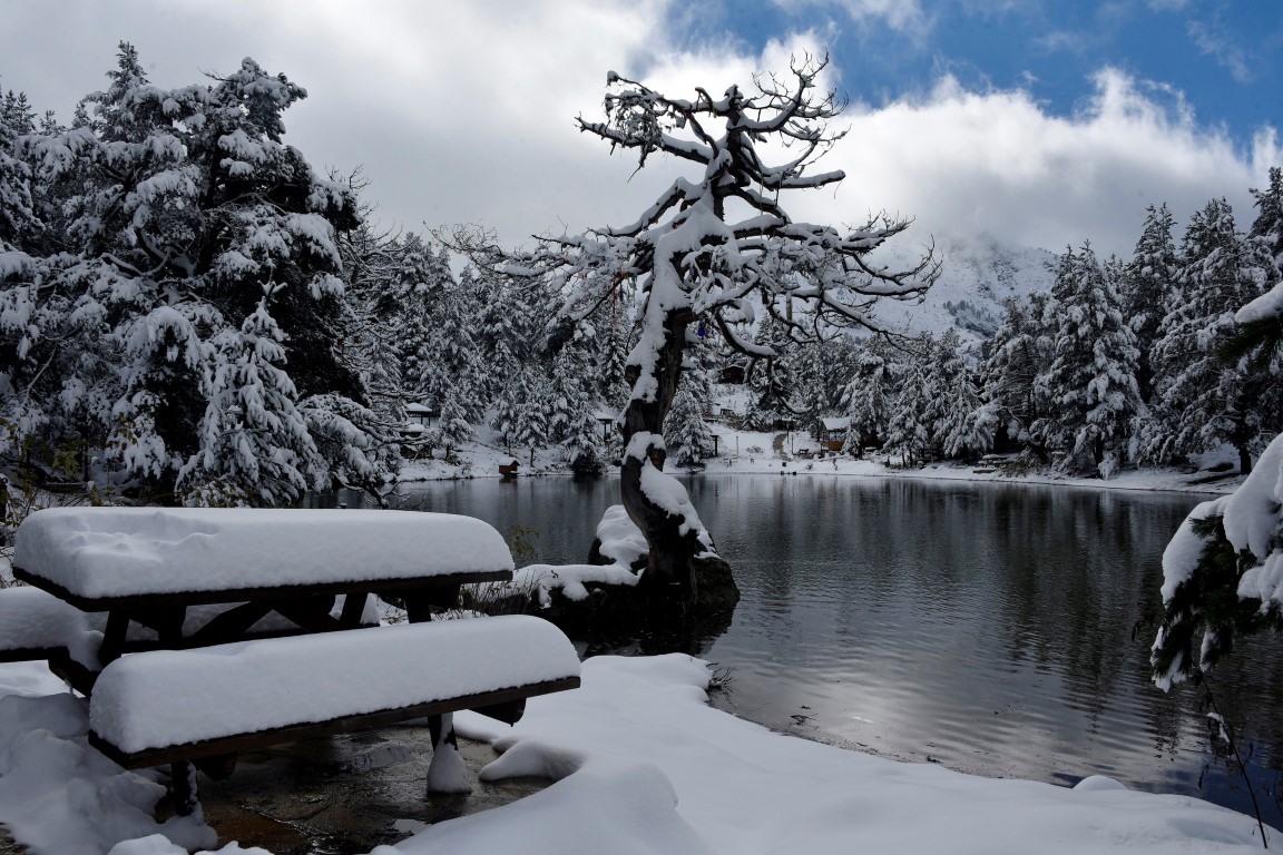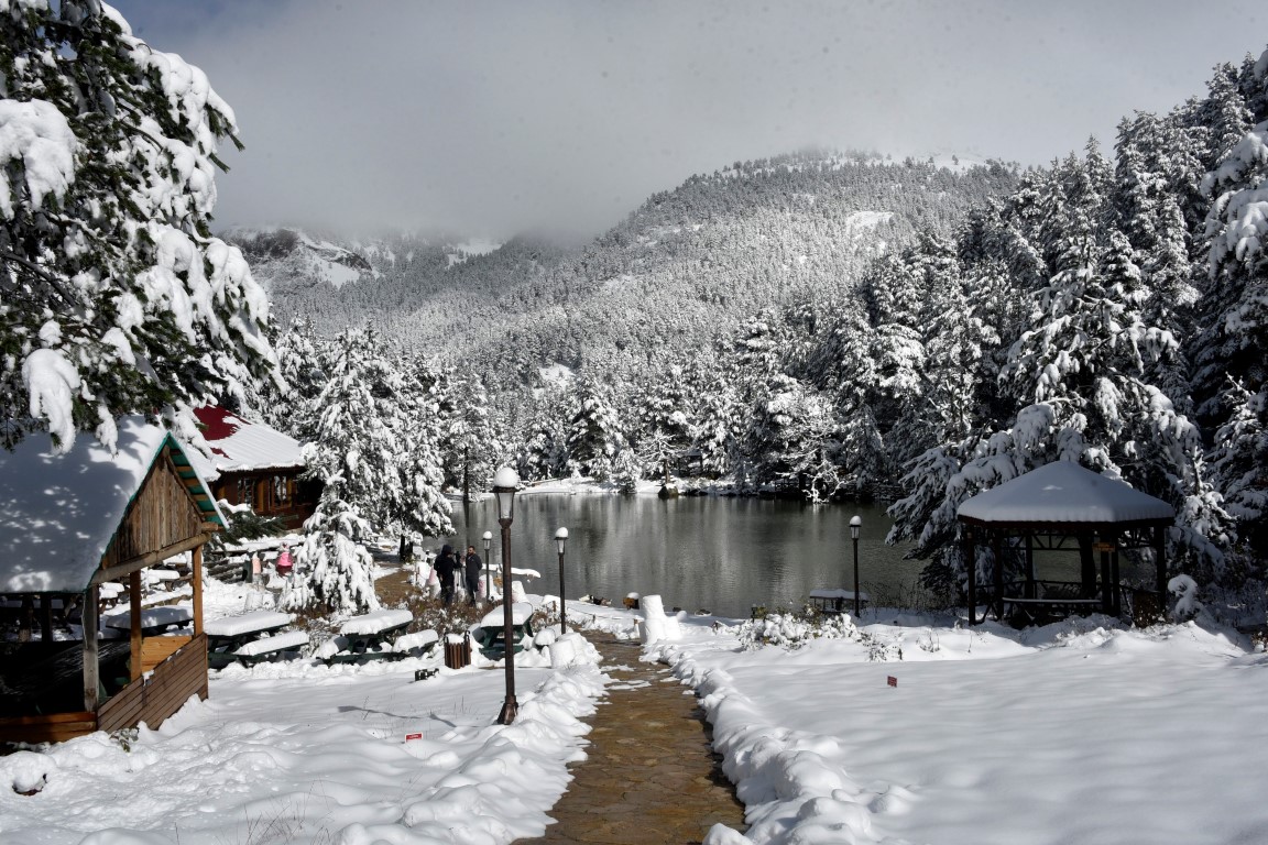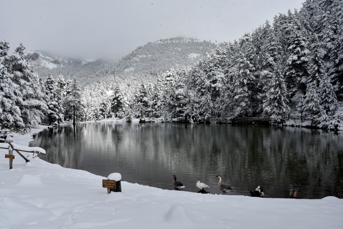 Gümüşhane'nin Torul ilçesine bağlı Zigana köyü sınırlarında yer alan ve denizden 2 bin 24 metre yükseklikte çam ormanları arasında temiz havası, eşsiz doğasıyla 'Huzur veren mekanlarından' birisi olan Limni Gölü Tabiat Parkı, yılın ilk kar yağışıyla birlikte eşsiz güzelliğe büründü.