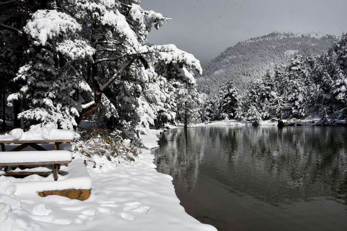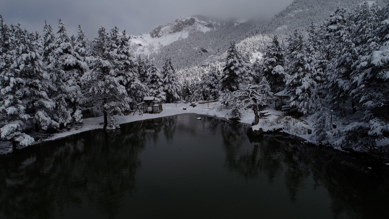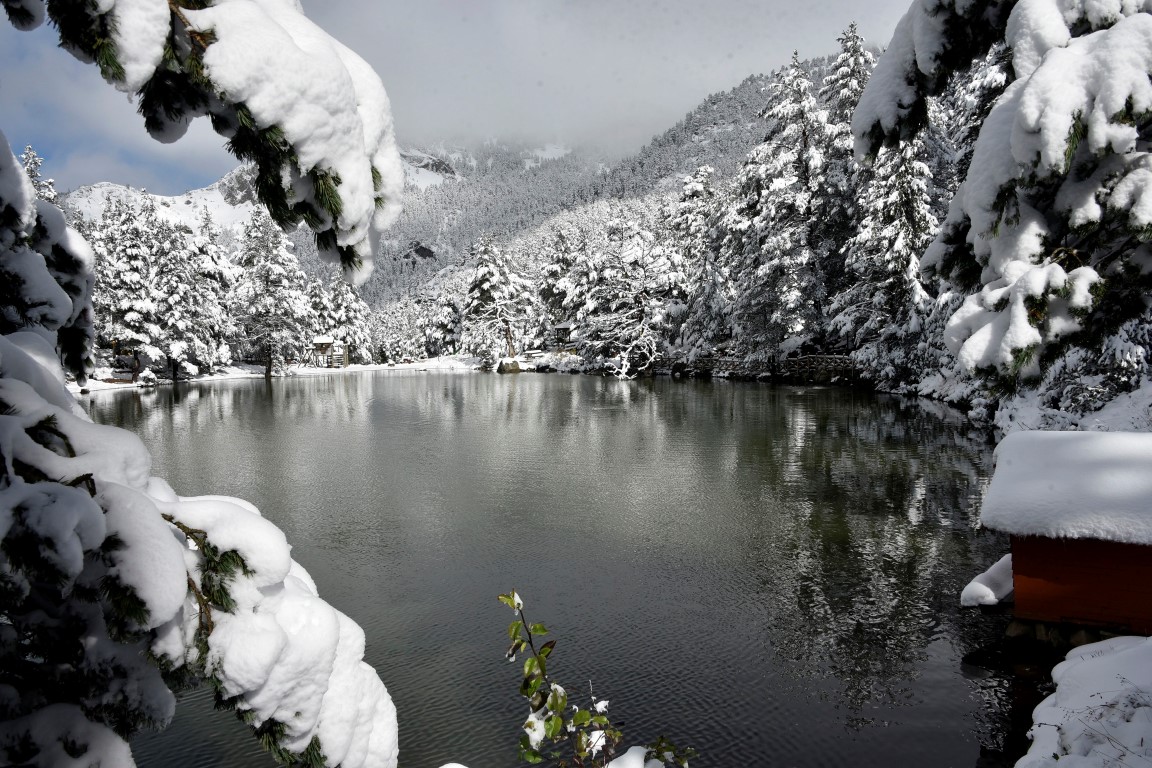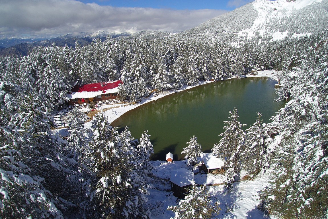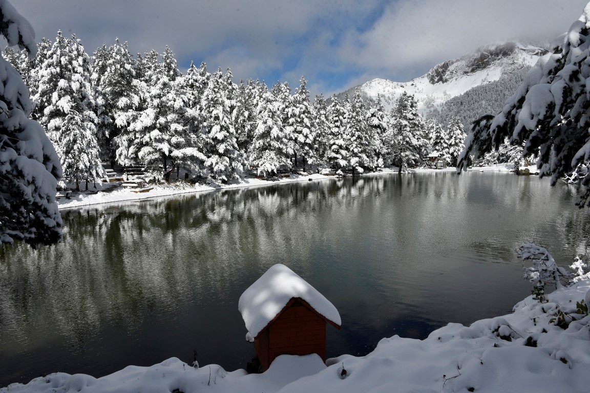 Gümüşhane'nin Torul ilçesine bağlı Zigana köyü sınırlarında yer alan ve denizden 2 bin 24 metre yükseklikte çam ormanları arasında temiz havası, eşsiz doğasıyla 'Huzur veren mekanlarından' birisi olan Limni Gölü Tabiat Parkı, yılın ilk kar yağışıyla birlikte eşsiz güzelliğe büründü.