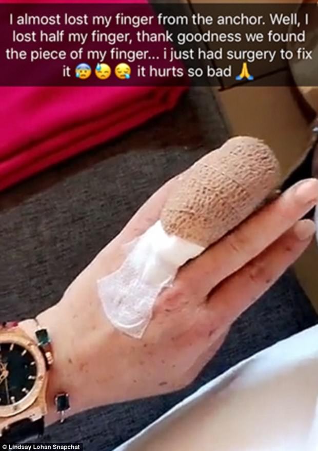 Olay Lohan'ın Snapchat hesabına bir snap atmasıyla öğrenildi. Lohansnap'inde şunları yazdı: Demir atmaya çalışırken az daha parmağımı kaybediyordum. Parmağımın yarısı koptu, tanrıya şükür parmağımın kopan parçasını bulduk. Daha yeni onları birleştirmek için ameliyat oldum. Canımı çok acıtıyor.