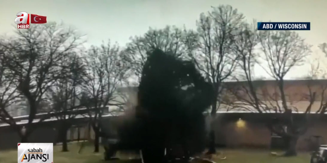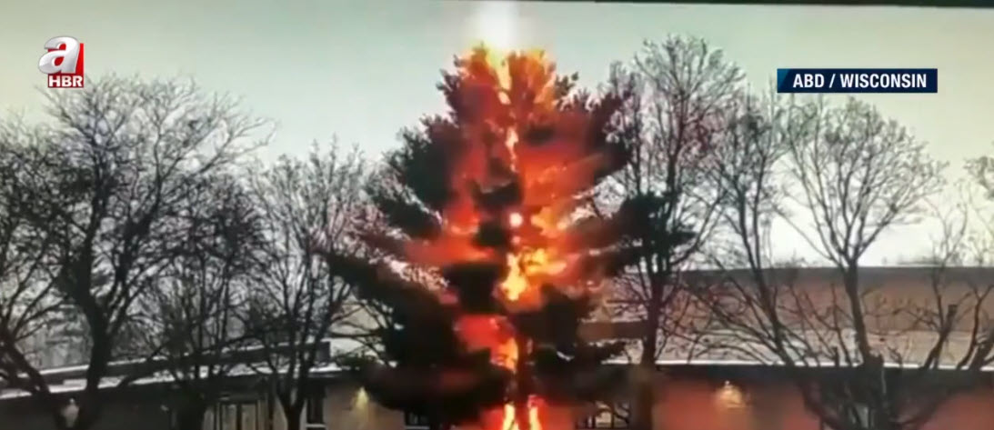 ABD Ulusal Meteoroloji Servisi, Wisconsin eyaletinde bir okulun bahçesinde bulunan çam ağacına düşen yıldırımın görüntülerini paylaştı. 6 metrelik çama isabet eden yıldırım ağacı ikiye böldü.
