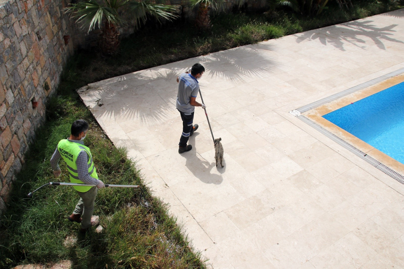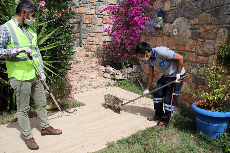 Bodrum Belediyesi Veteriner İşleri Müdürlüğüne bağlı Petbulance ekibi site sakinlerinin de yardımıyla yaban domuzu sürüsünü sağlıklı bir şekilde site dışına çıkarmayı başardı.