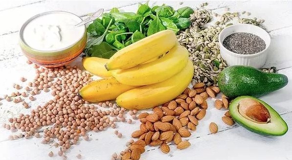 Fındık, badem, fıstık, Yeşil yapraklı sebzeler ( özellikle ıspanak) Fasulye Kepekli ekmek Avakado Patates Kahverengi pirinç