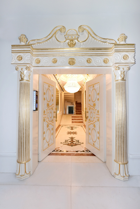 Görenlerin 'saray' diye adlandırdığı apartmanın her dairesinde musluklar ve kapı kulpları 24 ayar altın kaplamadan oluşuyor. Duvar süslemeleri ve mobilyaları da altın varaktan olan yapıdaki işlemlerde bir ressam titizliğiyle çalışılmış olması ise görenlerin ağzını açık bırakıyor. İçindeki eşyalardan dekorasyonuna kadar her şeyi el yapımı olan mimaride diğer yapılardan 100 kat daha pahalı ve dayanıklı malzeme kullanıldı.