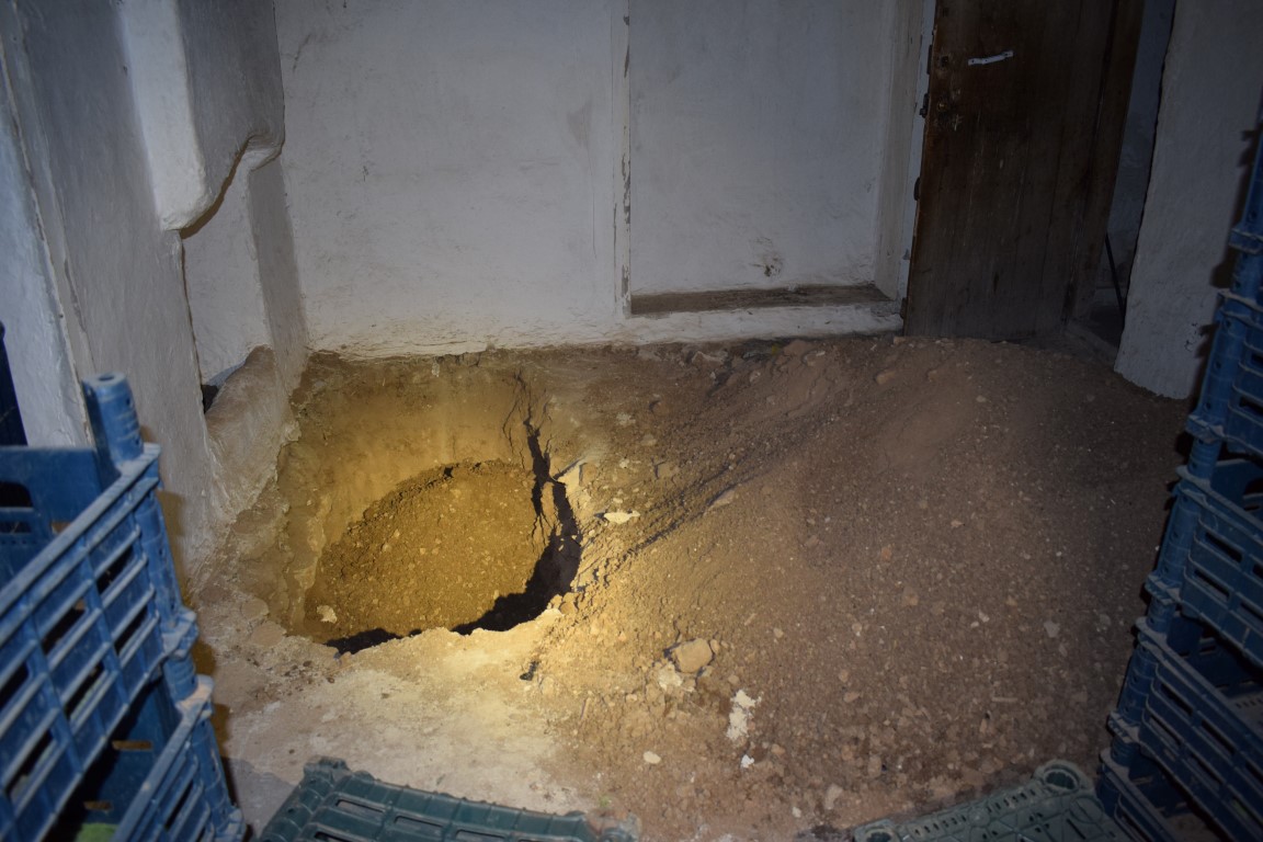 Olay, Yeşilyurt ilçesine bağlı Çavuşoğlu Mahallesi'nde meydana geldi. Edinilen bilgilere göre; H.B.'ye ait Sevinç Sokak içerisinde bulunan 2 katlı kerpiç bir evde kazma -kürek sesi duyan komşular eve giderek kapıyı çaldı.