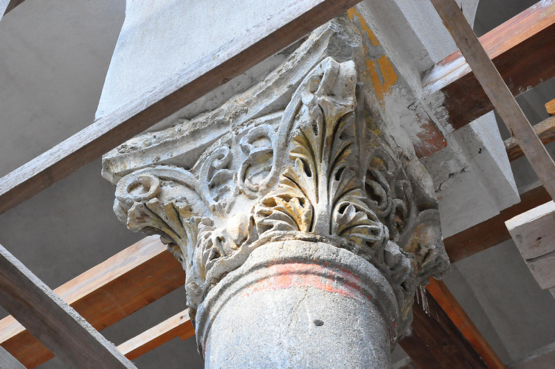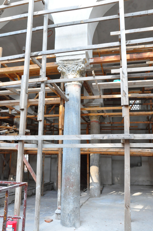 Restorasyon sırasında, caminin yapımından 8 yıl sonra iklim şartları nedeniyle iç tarafta örülen duvarda sıva raspası çalışması yapıldı, sıvalar kazındı. Ortaya 6 sütun çıktı. Sütunların Bizans dönemine ait olduğu belirlendi. Duvarla birlikte ortaya çıkan sütunlar tarihe ışık tuttu.
