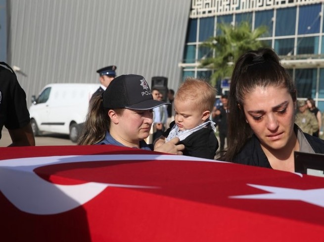 Son dakika haberleri… Mardin'in Derik ilçesindeki kazalarda geçen gün 20 kişi hayatını kaybetti. İlk kazaya müdahale edenler için olan şehit memuru Yahya Ergün için bu sabah tören yapıldı. Şehidin eşi sinir krizleri geçirdi. Bir çocuk sahibi Ergün'ün 1 hafta önce Tekirdağ Şarköy'den Mardin'in Derik ilçesine tayin olduğu ortaya çıktı. Şehidin 1 yaşındaki çocuğu da her şeyden habersiz olanları seyretti…
